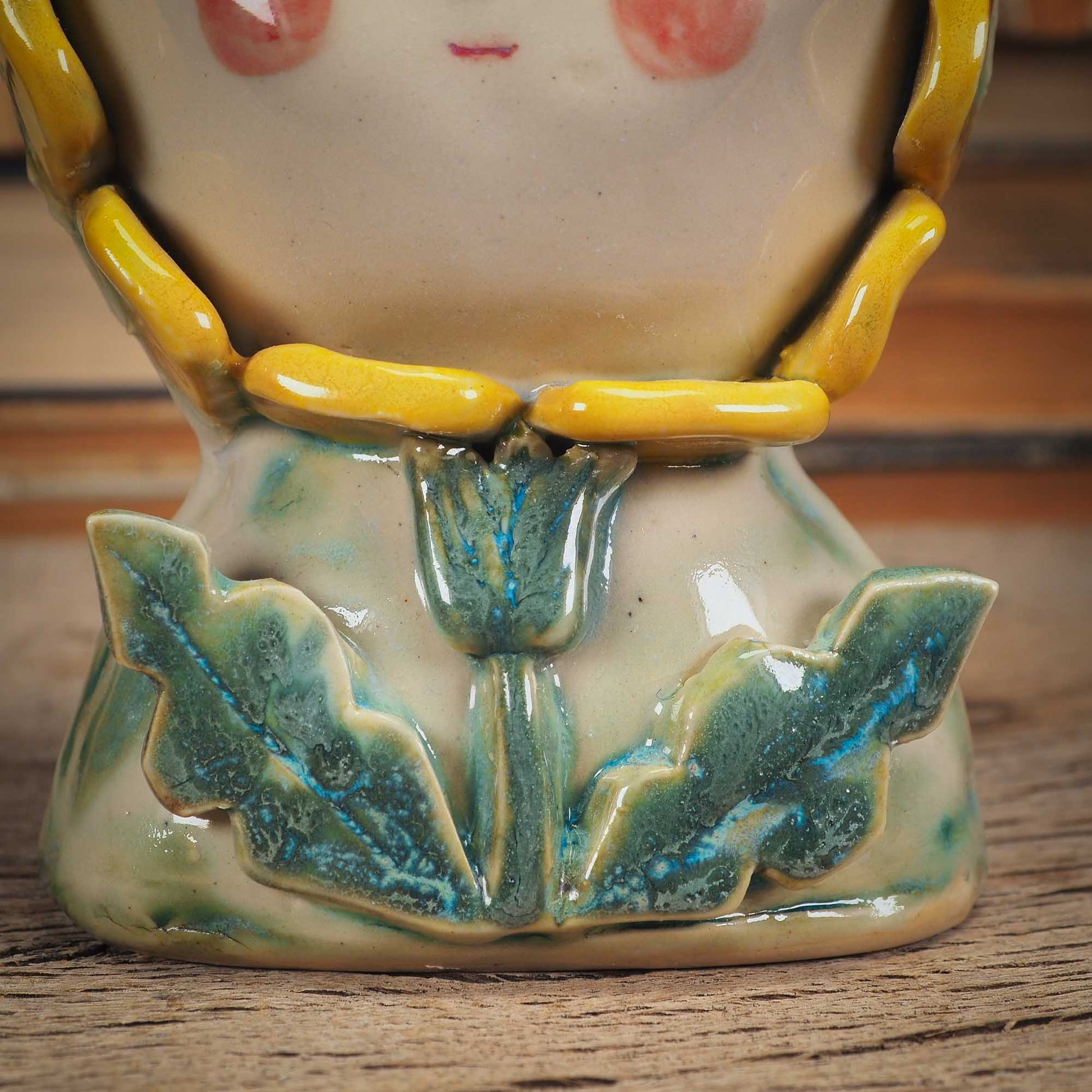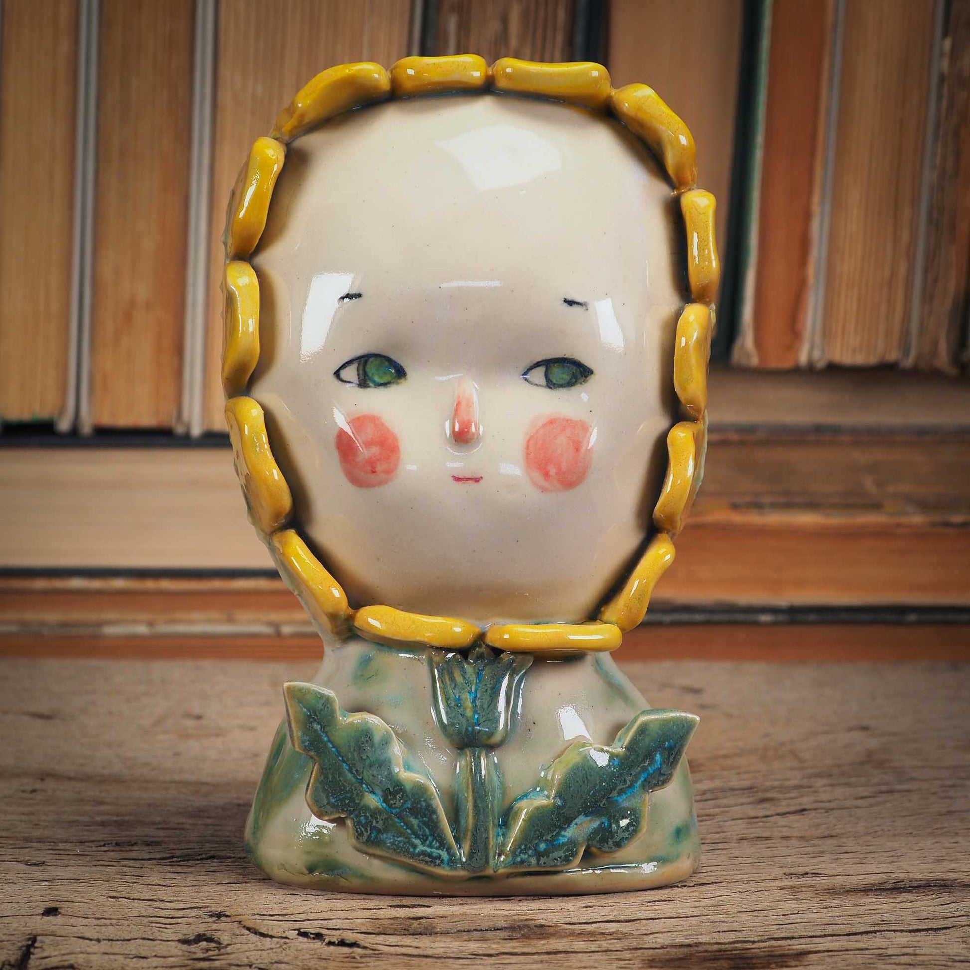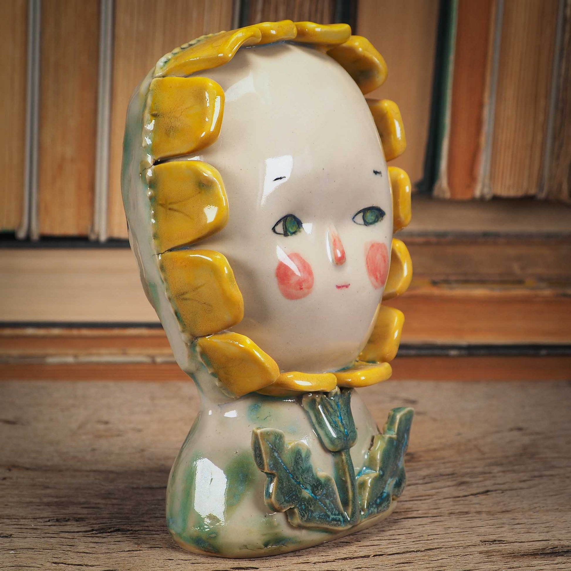She's a sweet flower high firing ceramic sculpture hand built by me. She's young and it's just blossoming to life, still so innocent, sees everything with tender eyes and invites you to see things as if you were looking at them for the first time.