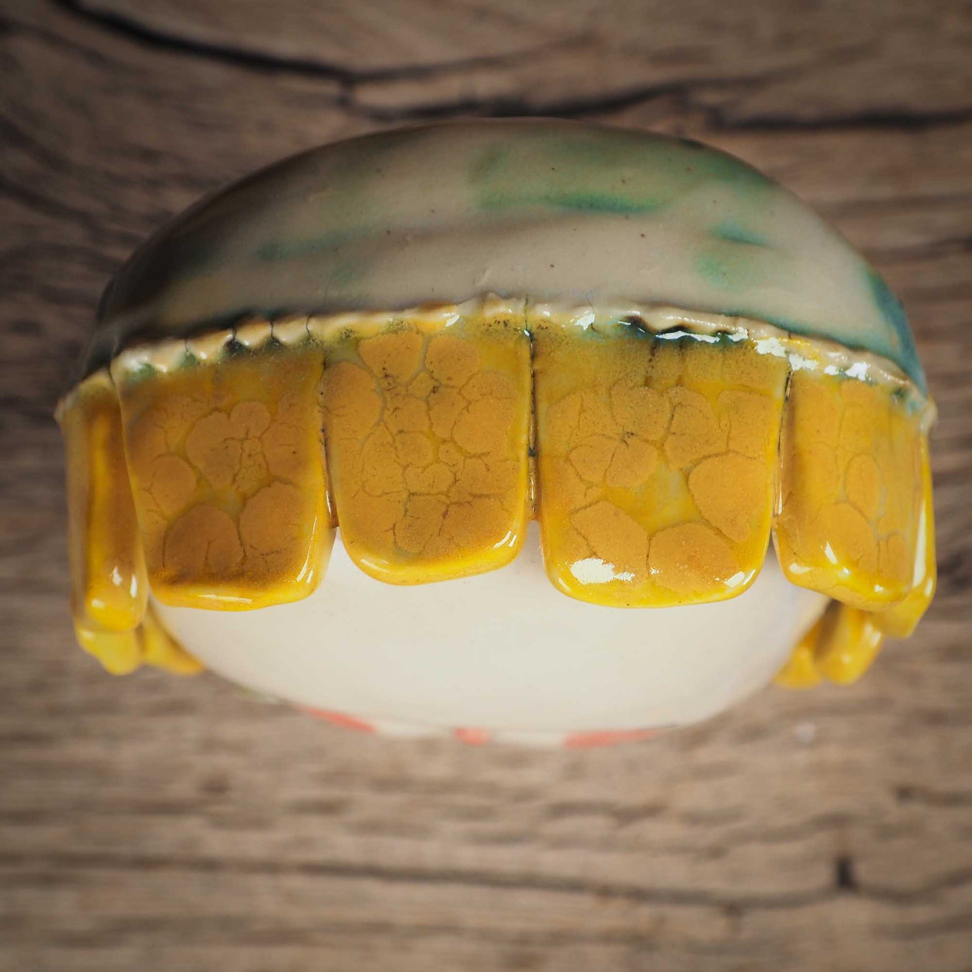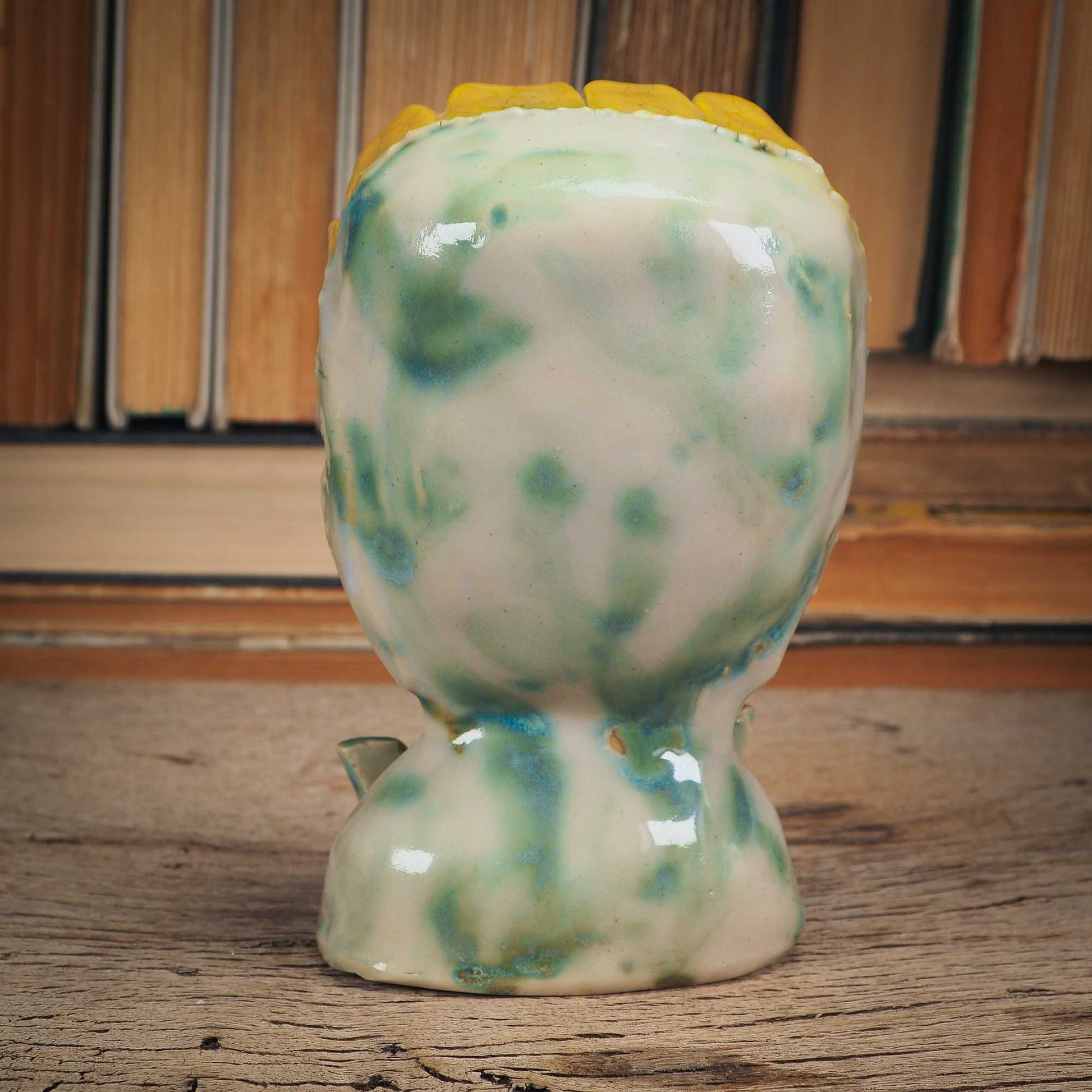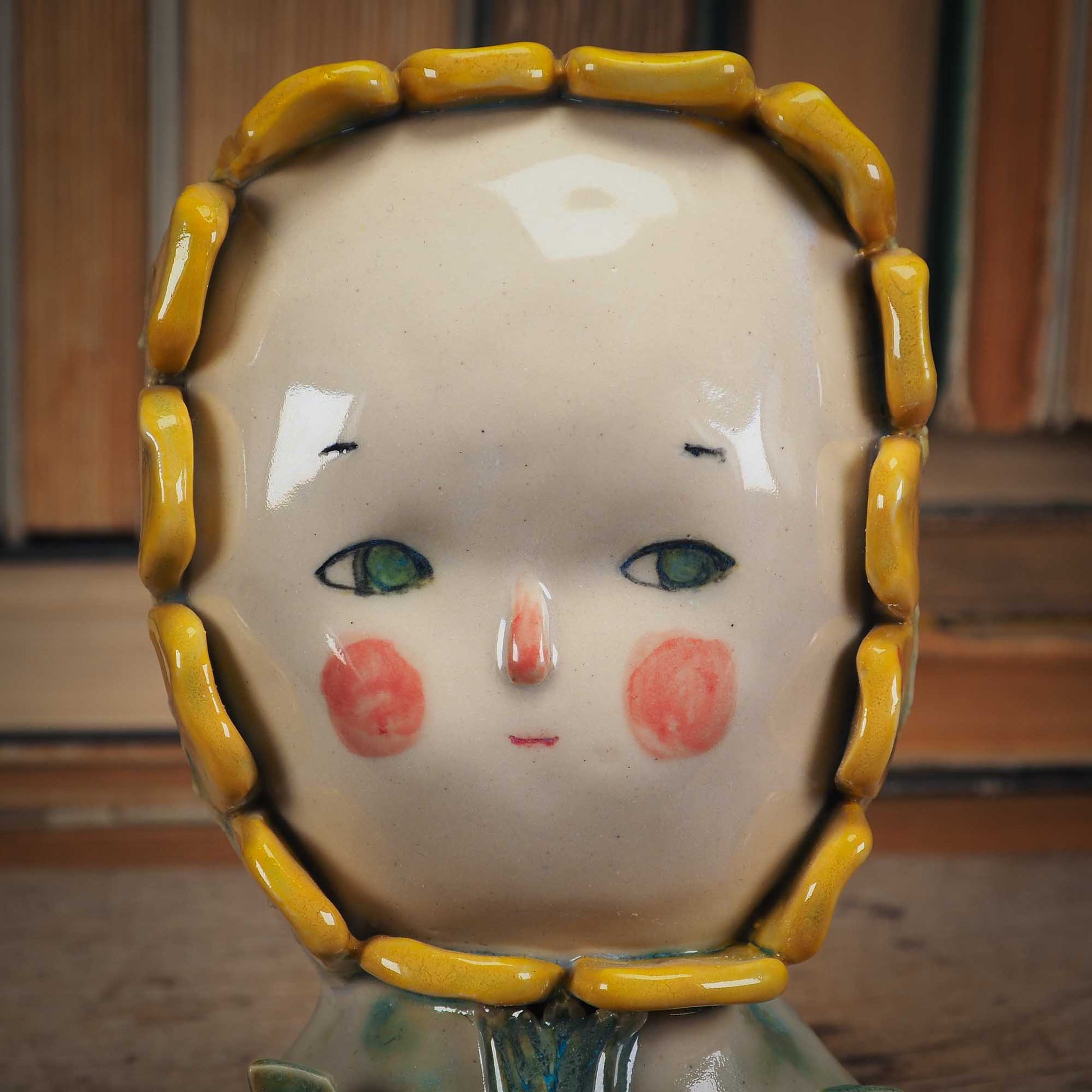 She's a sweet flower high firing ceramic sculpture hand built by me. She's young and it's just blossoming to life, still so innocent, sees everything with tender eyes and invites you to see things as if you were looking at them for the first time.