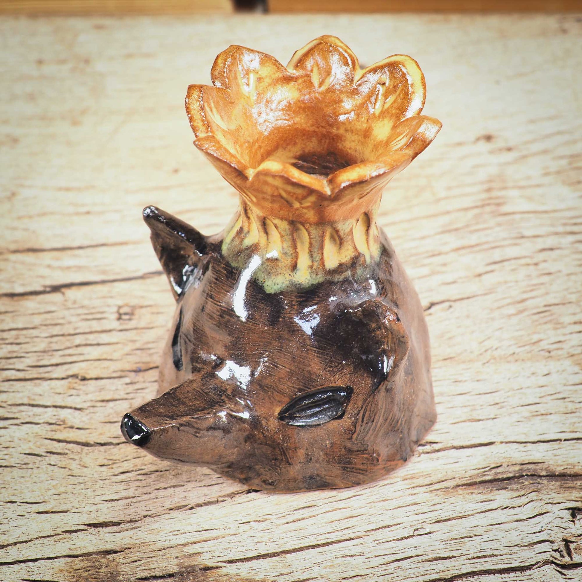 Imagine the scene: you light up a candle, and this mischievous wolf grins back at you, like it's got the juiciest secret in the forest. With its carefully sculpted features and a touch of whimsy, it's as if this ceramic creation has a direct line to the wolf spirit world. It's the perfect companion for your cozy nights, adding a dash of enchantment to your den.