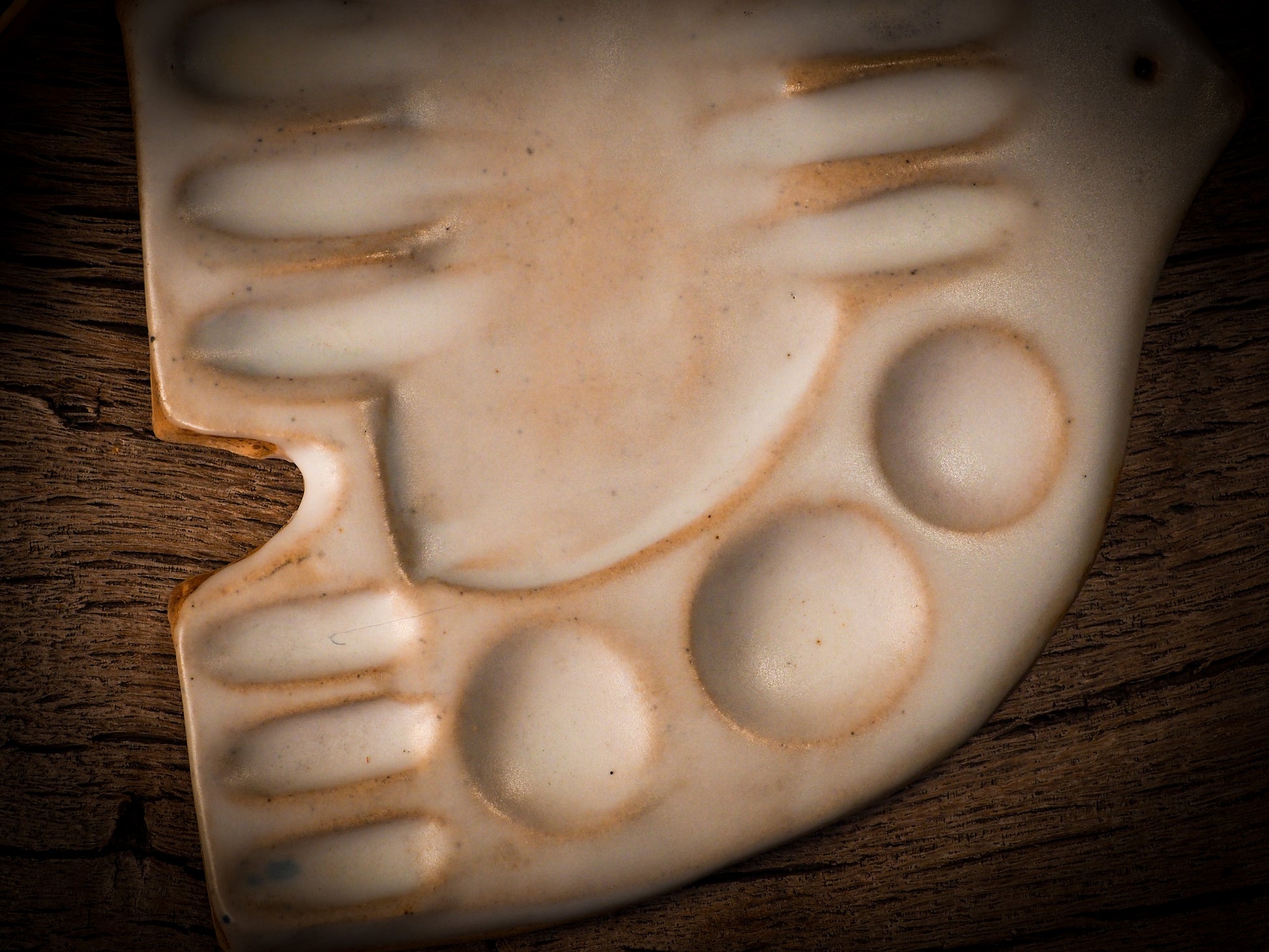 Each artist paint glazed ceramic palette by Idania Salcido, the artist behind Danita Art, is hand sculpted and fired with paint and scratch resistant glazes and with enough paint wells to keep and mix colors at ease.