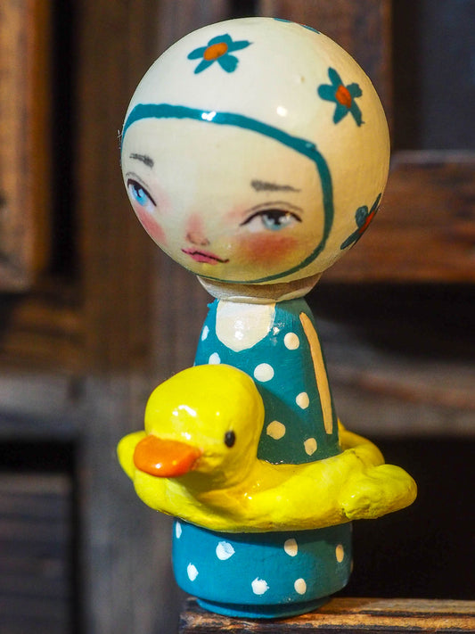 RUBBER DUCK - An original mixed media kokeshi mini doll wood sculpture by Danita Art