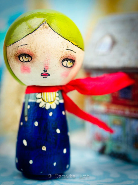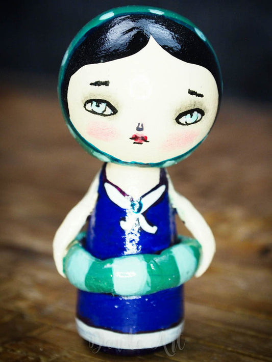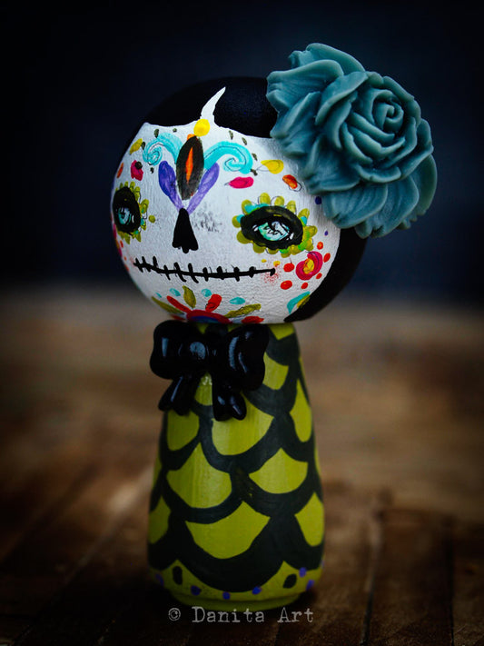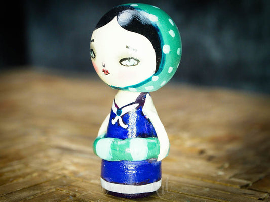 Sold outTeal Winter Kokeshi with Tin House