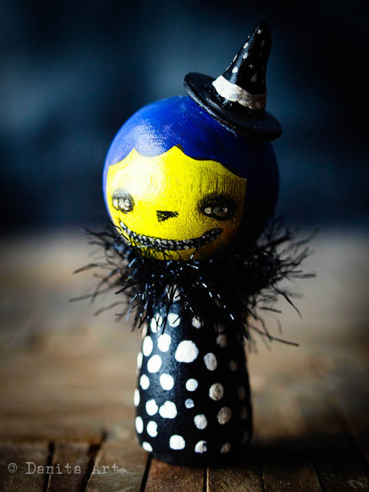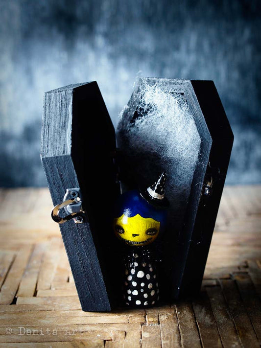 Midnight Blue Winter Kokeshi with Tin House