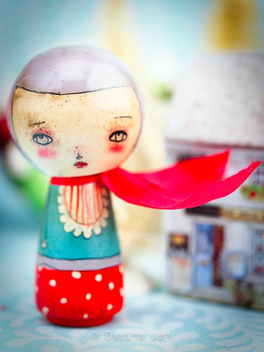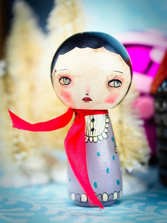 Sold outViolet Winter Kokeshi with Tin House