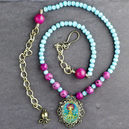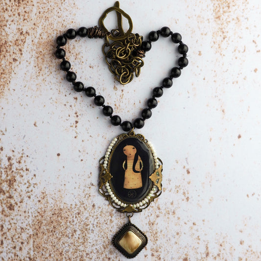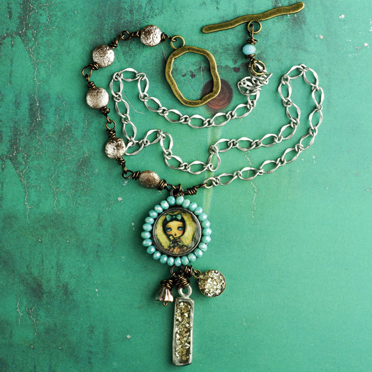 Unicycle - Handcrafted necklace with surreal girl by Danita