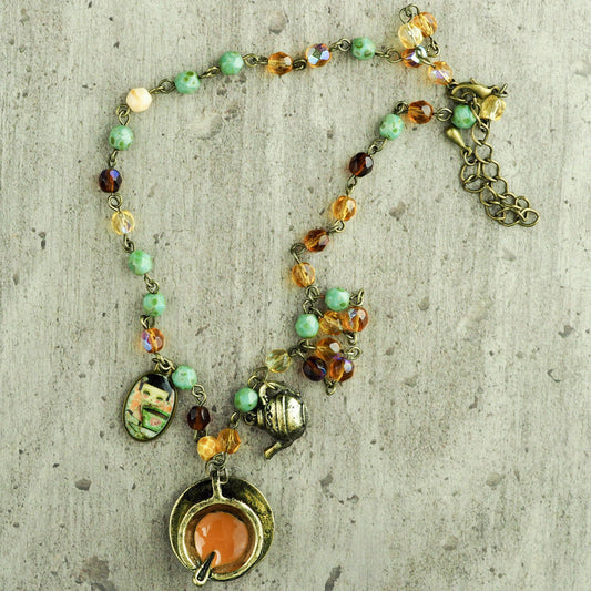 The tea fairy - Necklace with golden tea cup