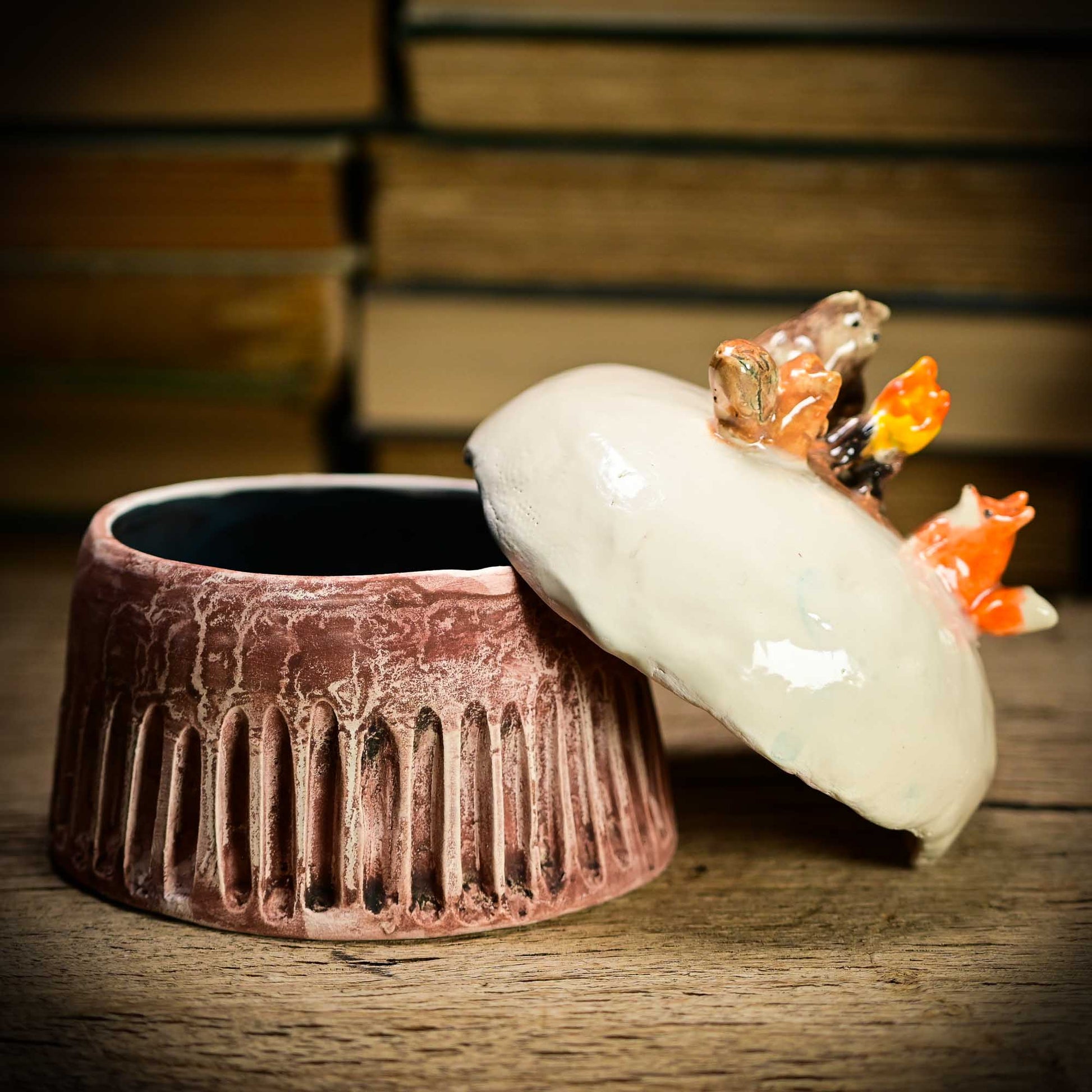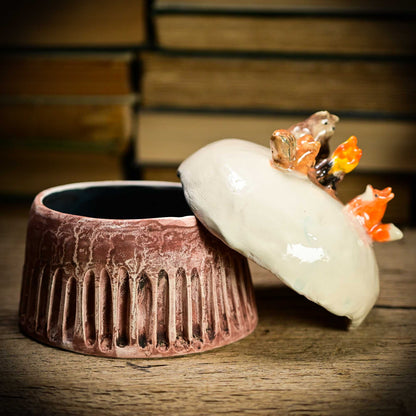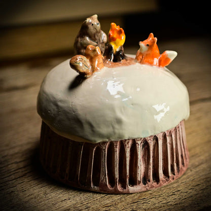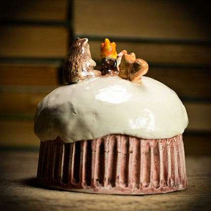 This Christmas sculpture is made with glazed ceramics, handmade by in my studio. Made with lots of love, it wants to be a part of your holiday decoration and cheer you up with lots of Christmas and holiday stories from my childhood.