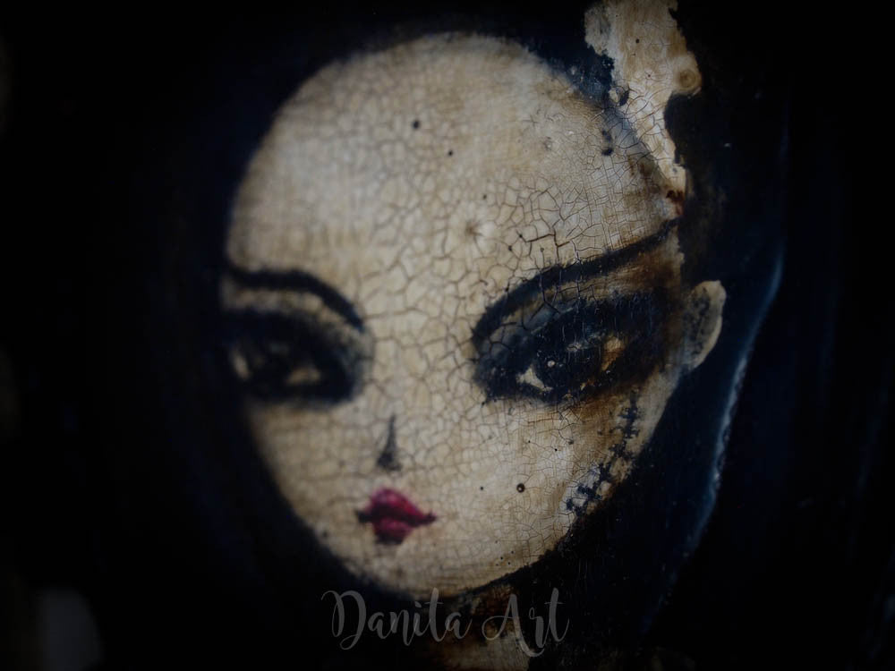ready to hang or to be propped on a shelf, it will be an amazing addition to any Danita collector, and to any Halloween lover.
