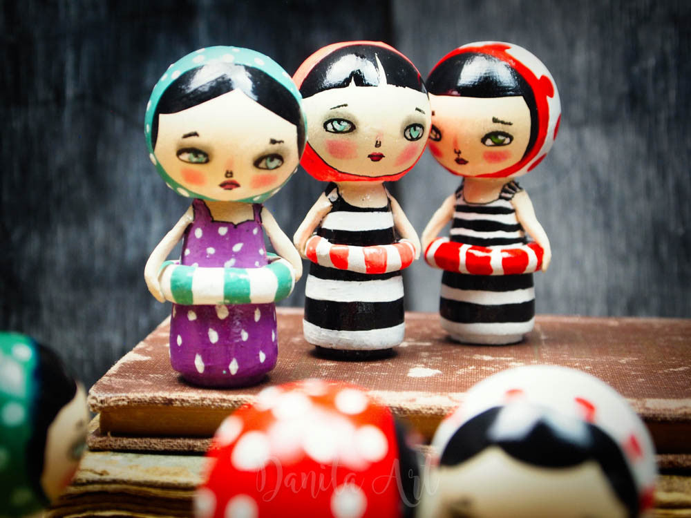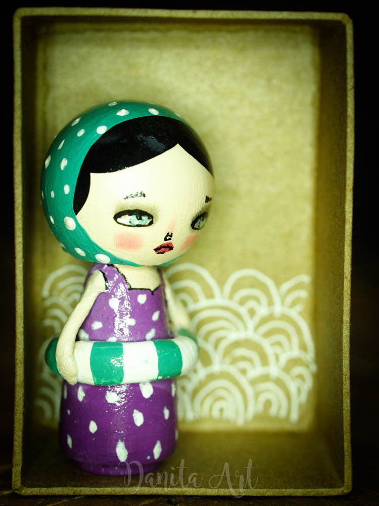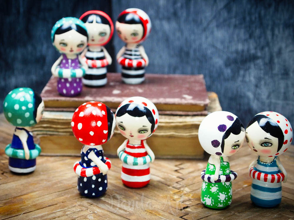 This year's summer Kokeshi line has super cute little girls with Victorian style bathing suites and striped floaters.