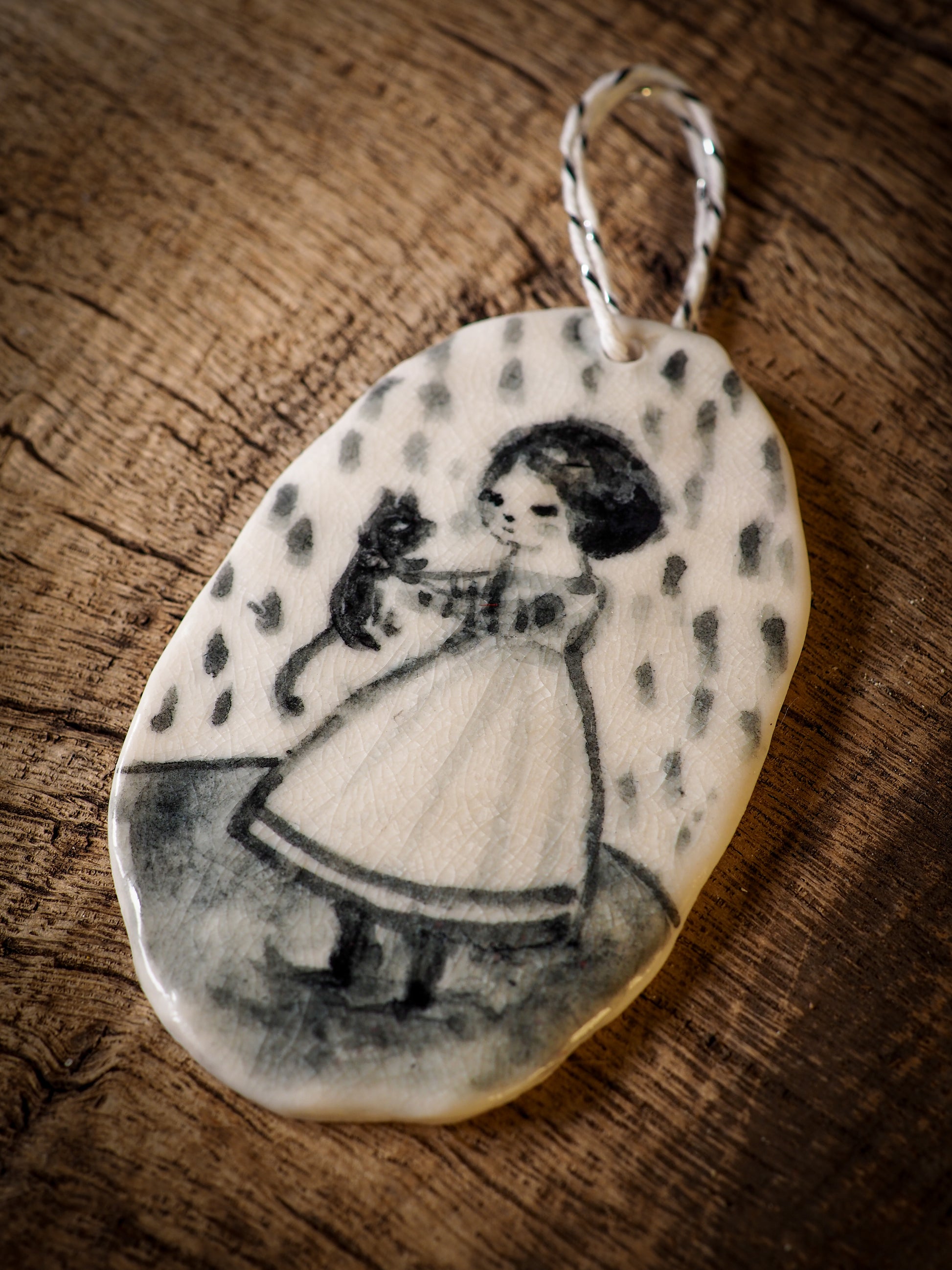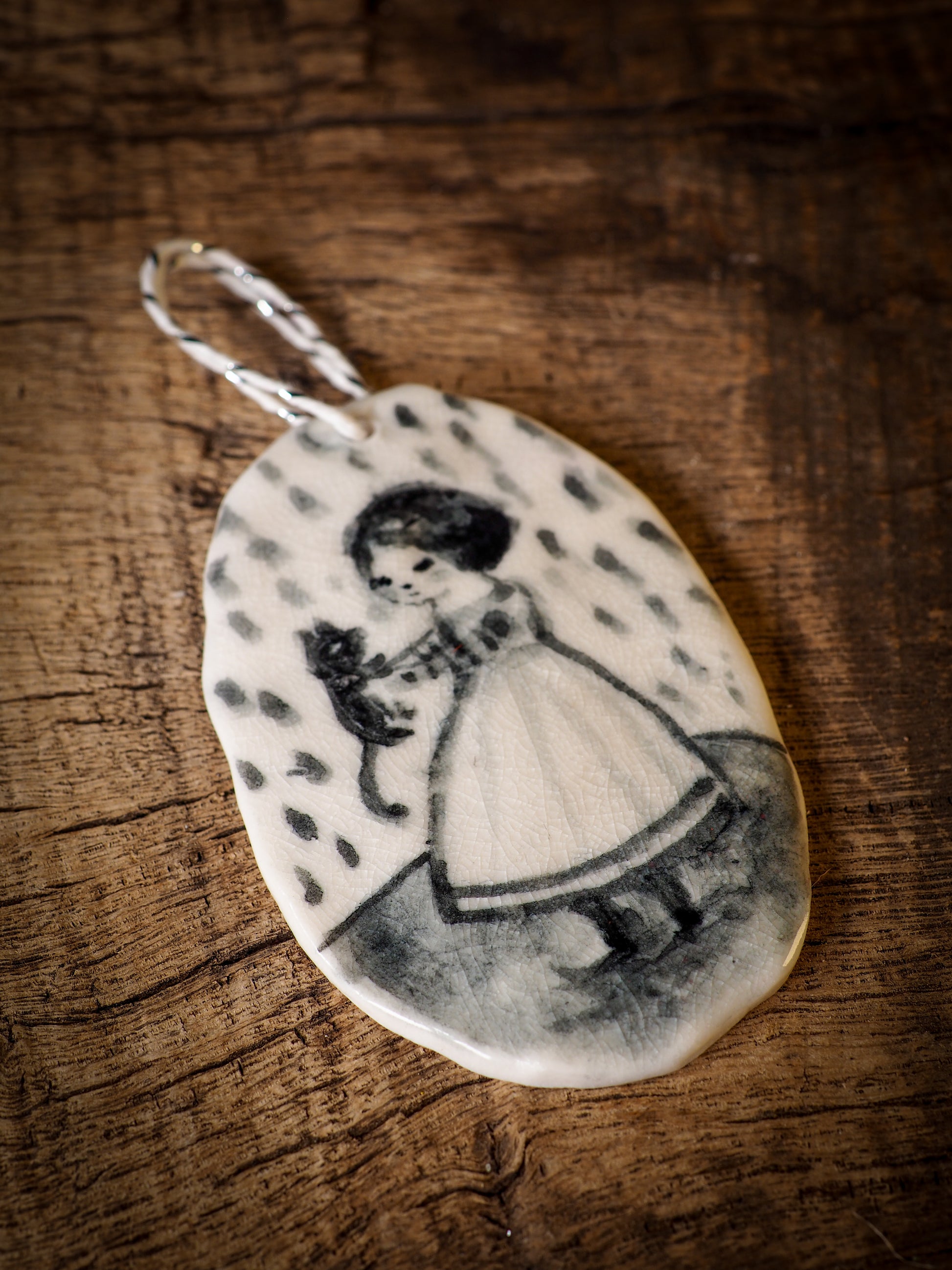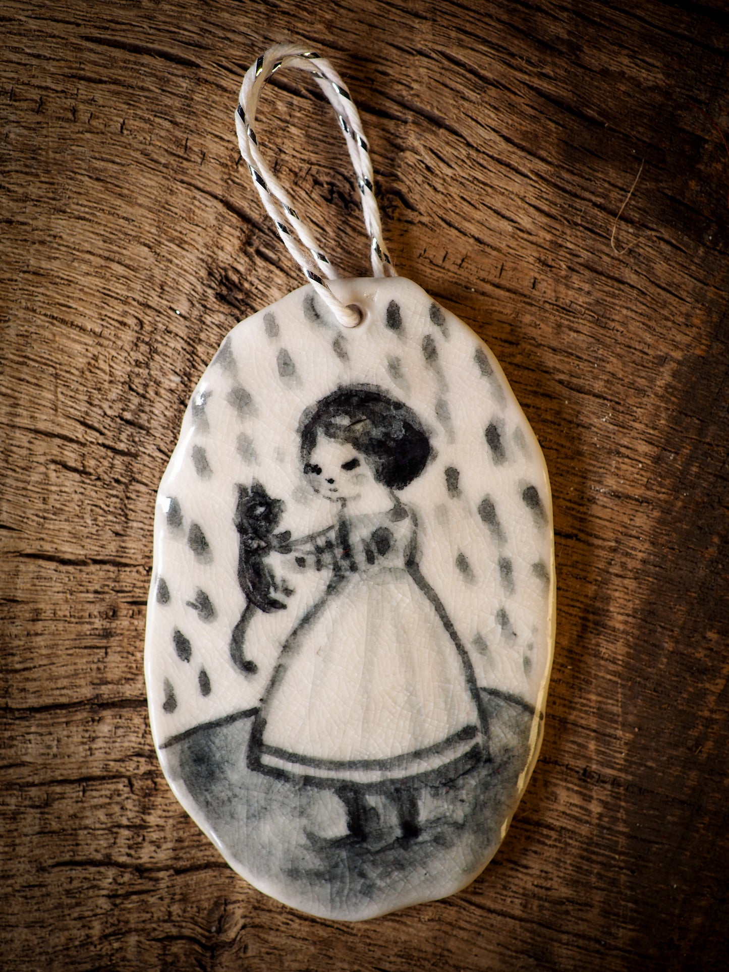Totally hand made on my studio, each of my ornaments is hand painted, fired twice on a kiln at more than 2000 Degrees, then finished with a beautiful twine hanger.
