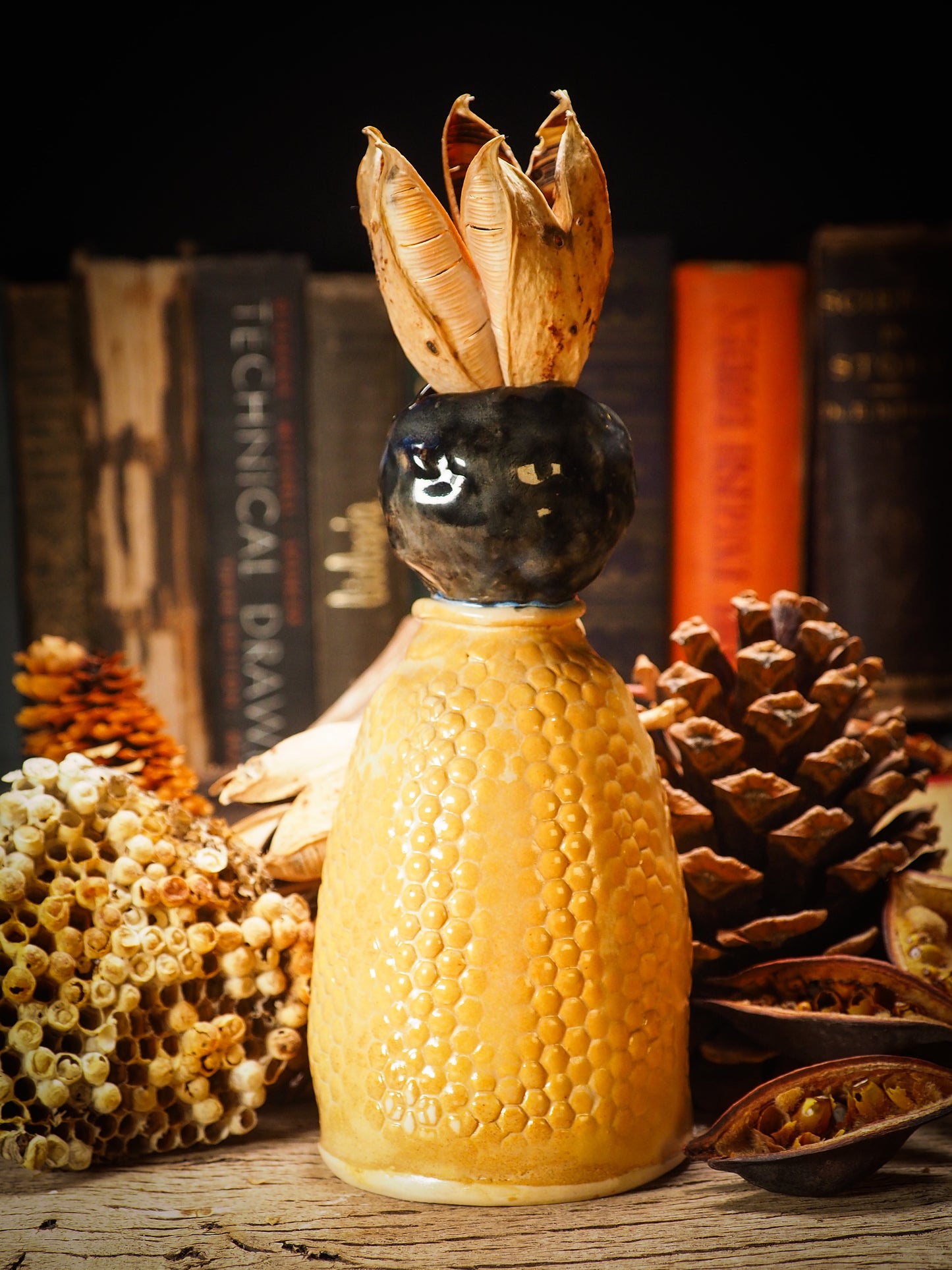 You are looking at an original handmade ceramic vase by Idania Salcido, the artist behind Danita Art. Each one is a unique work of art on itself, inspired and designed by the work of honeybees on my small container garden. Hand built by me, glazed and fired on my old school kiln.