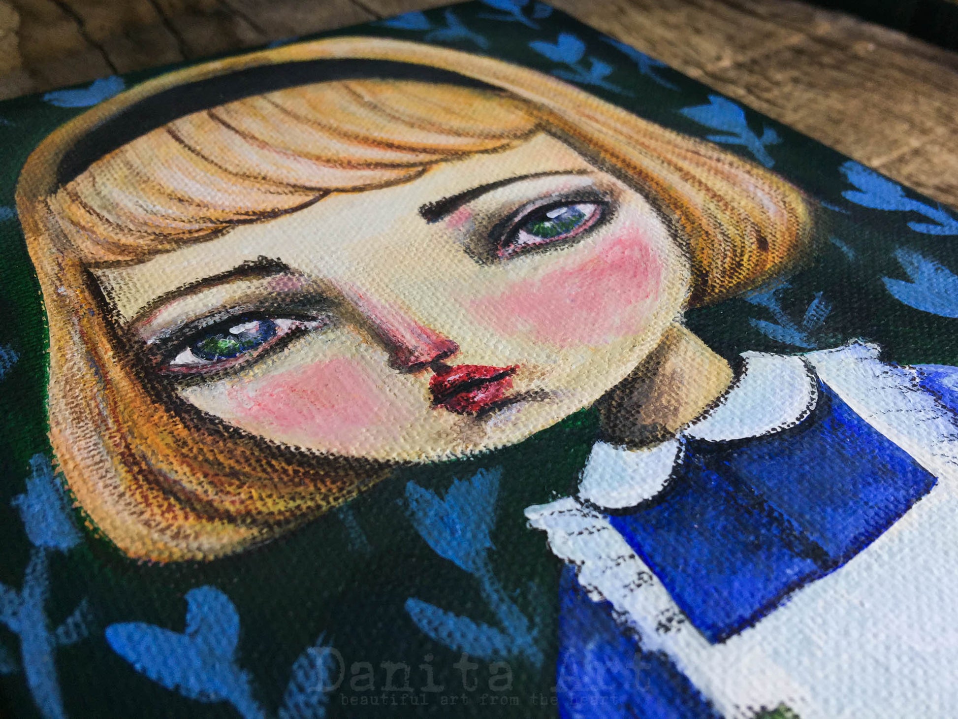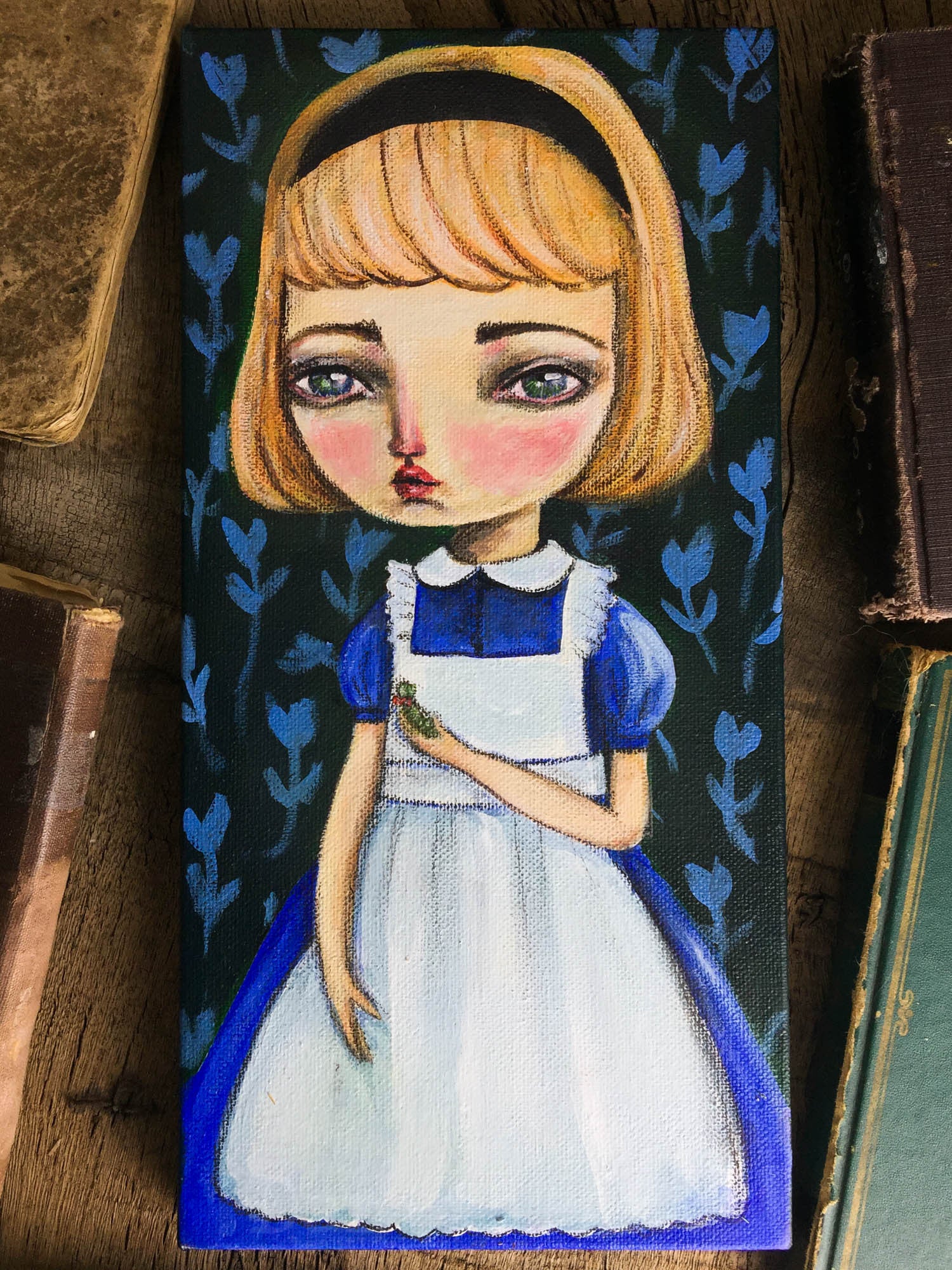 Alice appears many times on my original art, I just love the character and her adventures on Wonderland are the perfect setting for surreal and whimsical mixed media paintings by me, Danita!