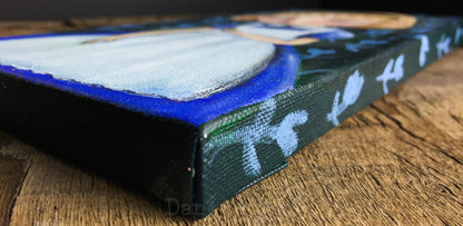 A 6" x 12" canvas, it's ready for hanging on placing on your favorite shelf as soon as take out of the gift wrapping she will arrive on.