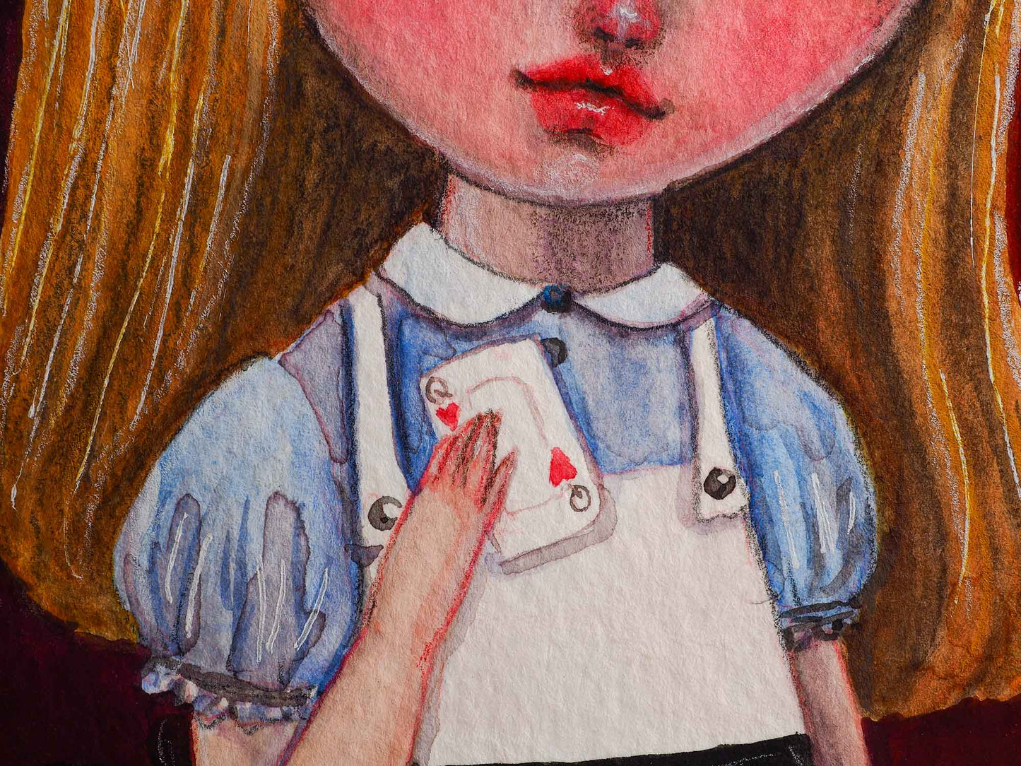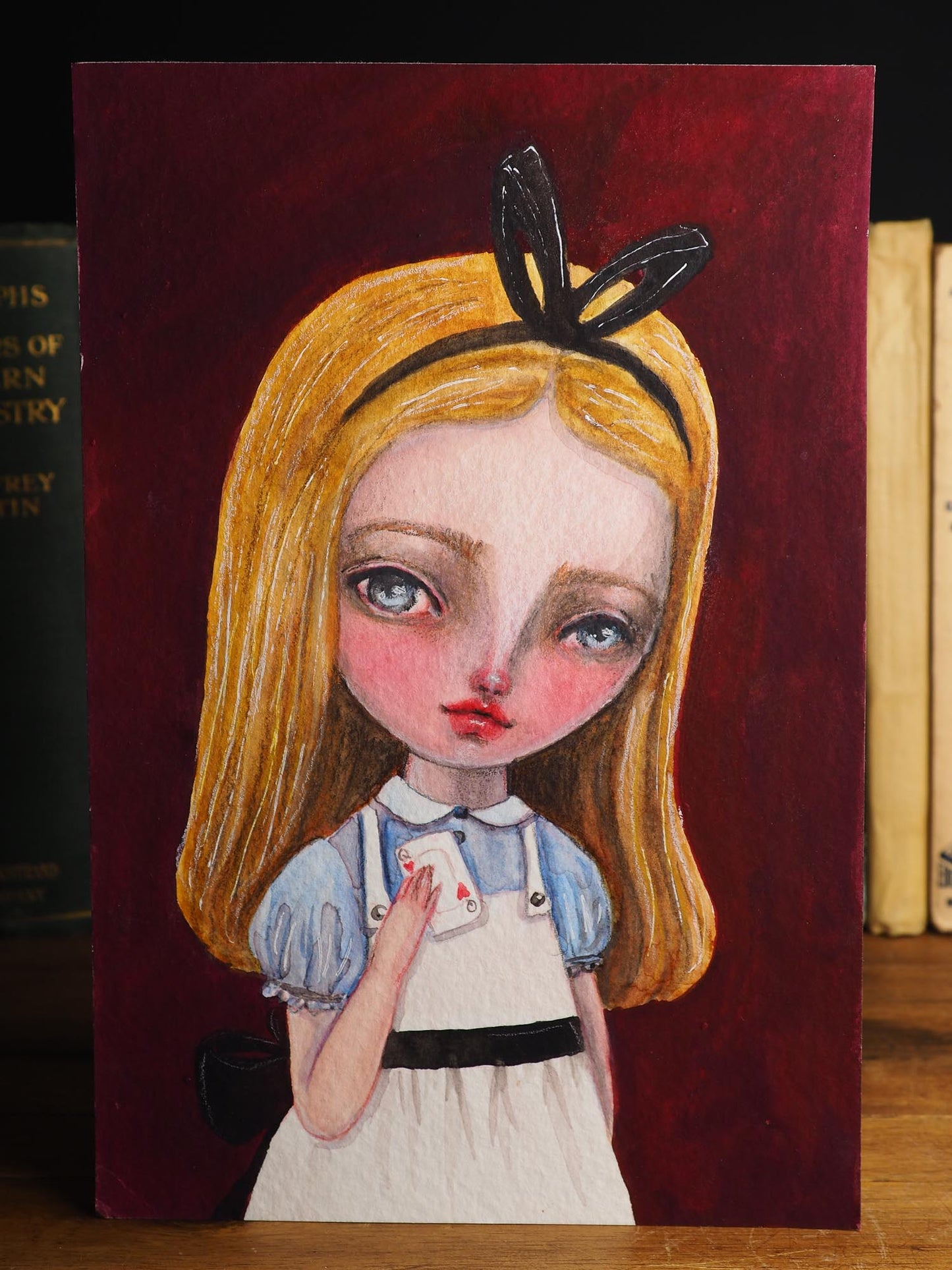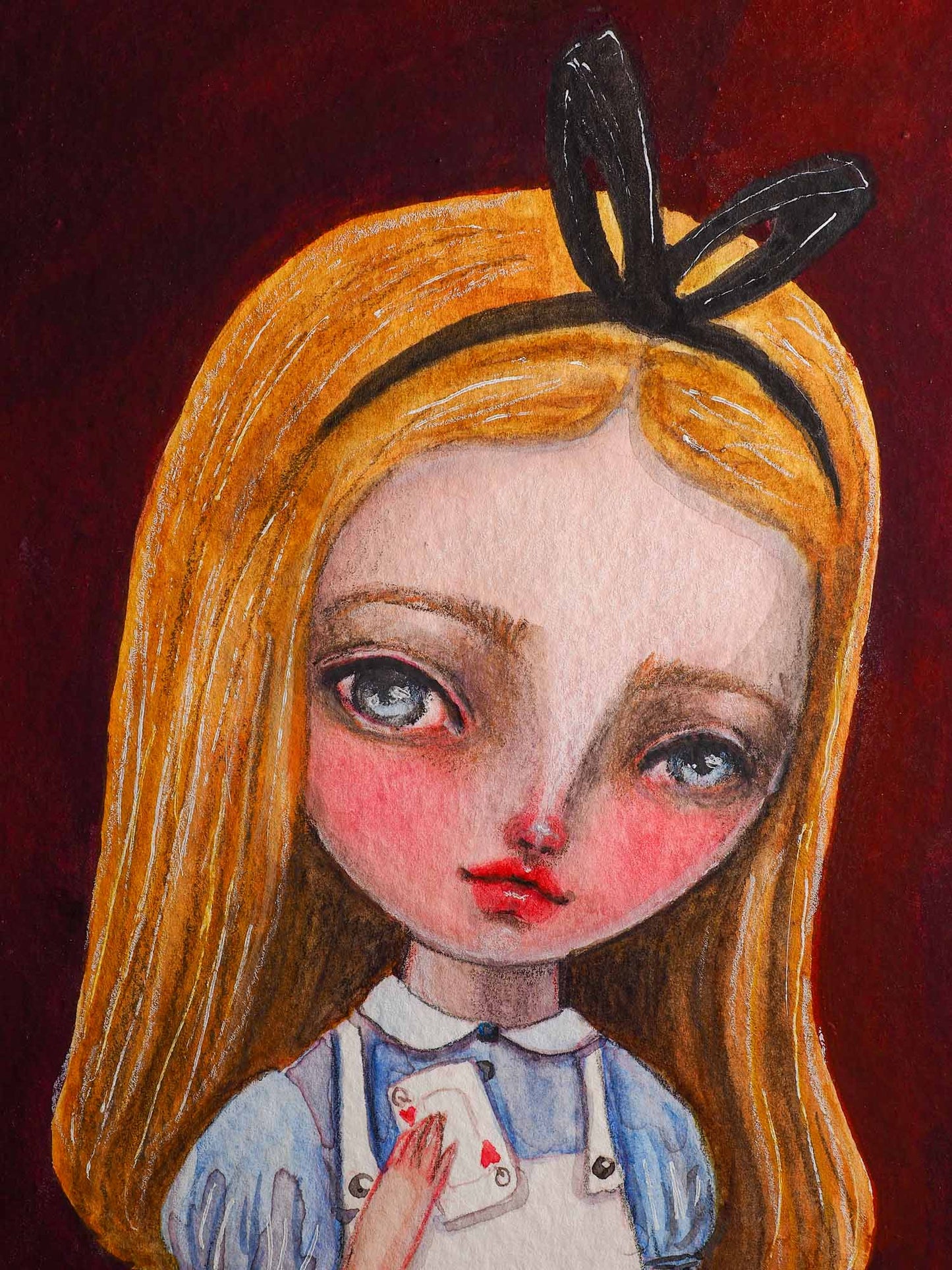 Alice in Wonderland has my special touch in this painting. Instead of the usual fantasy setting, she is holding a simple queen of hearts card in her hand. It made me wonder, was the story only in her head?