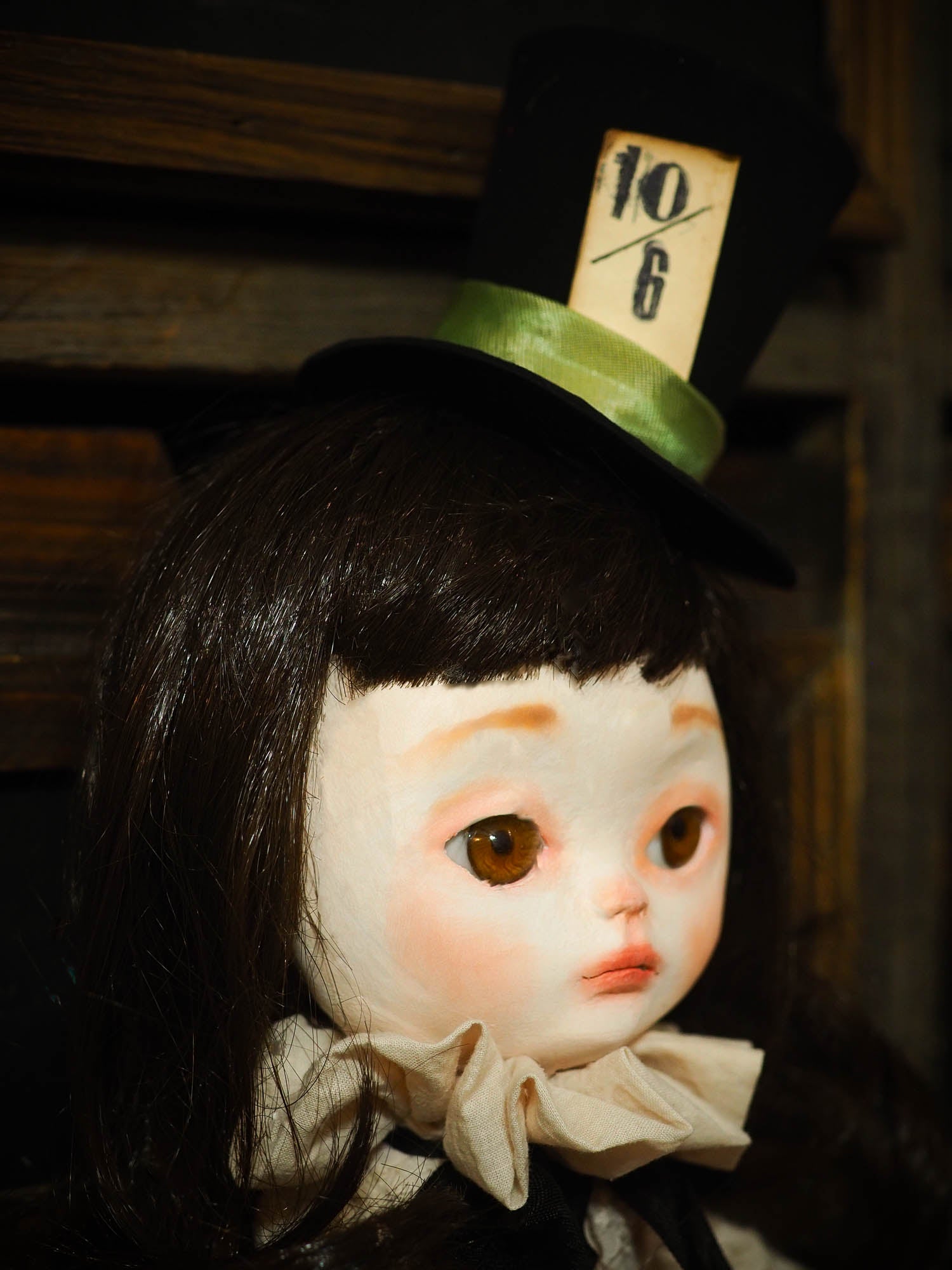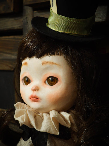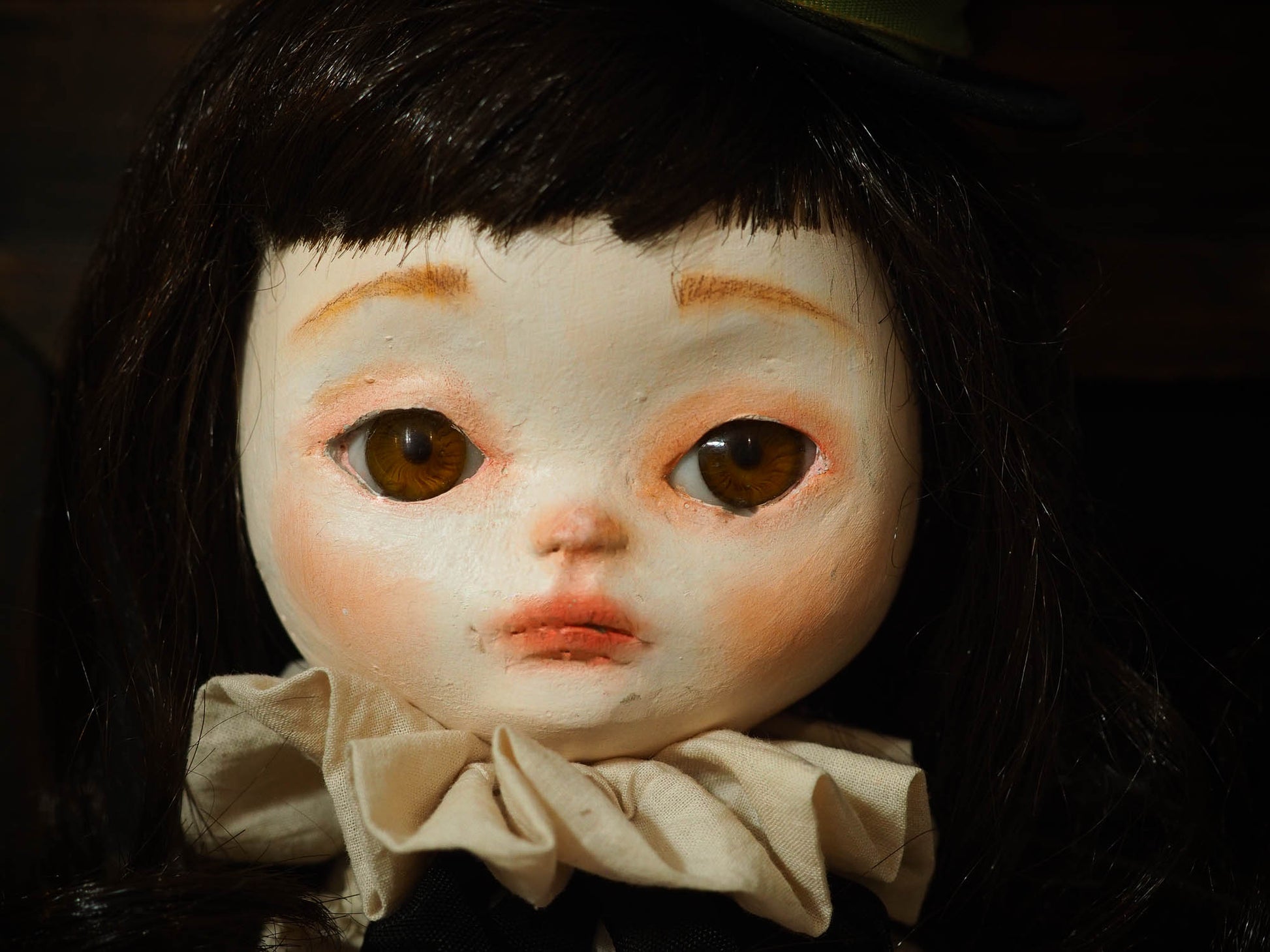 Her face is totally hand sculpted by me, Danita, with beautiful big glass eyes. She looks just like if I took one of my paintings and brought it to the real world.