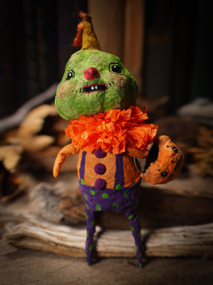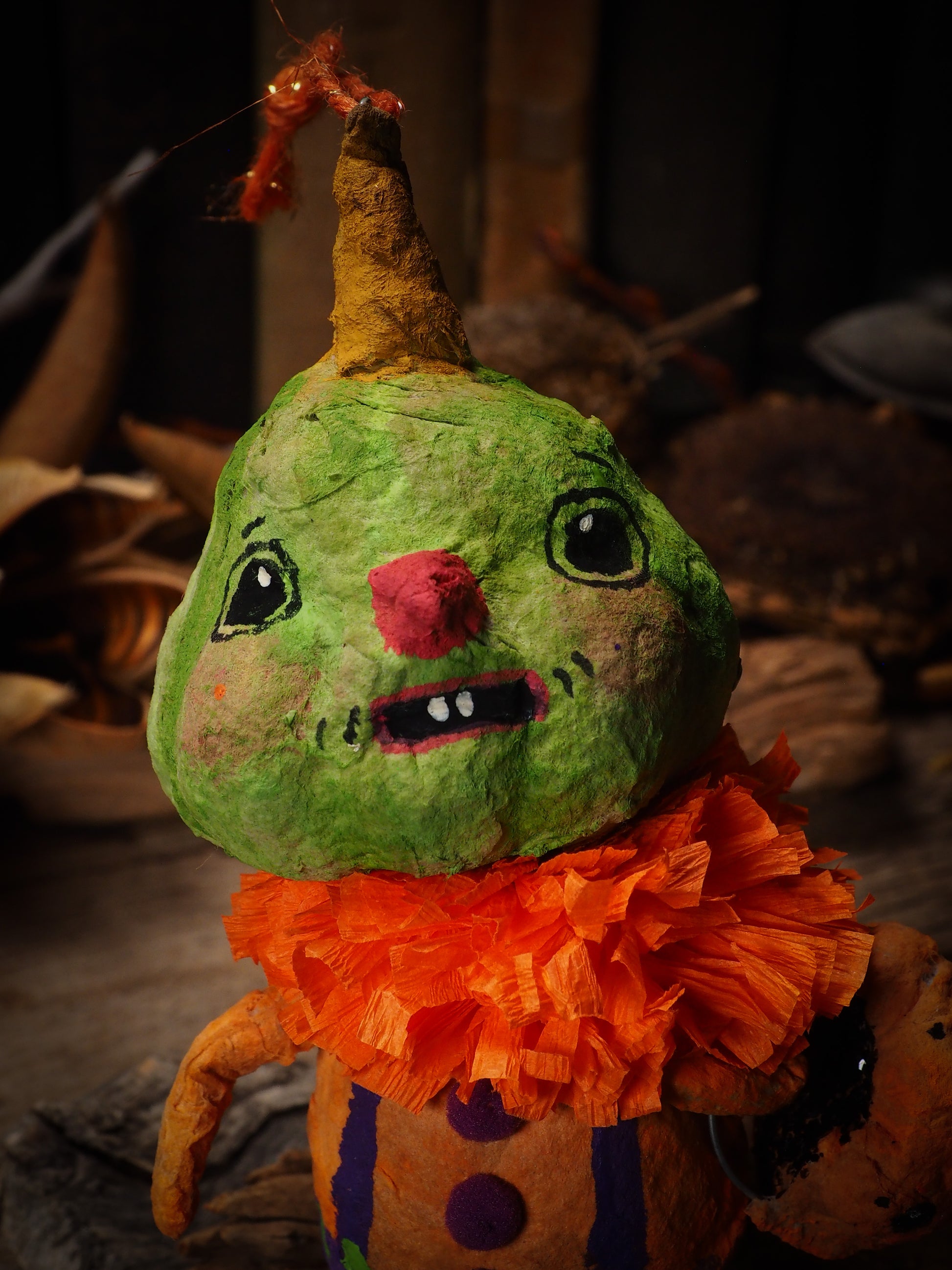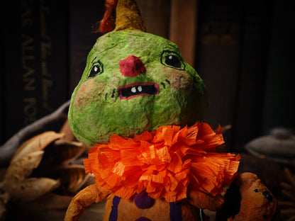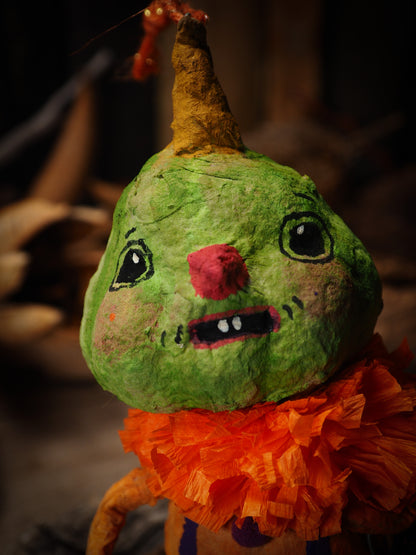 This handmade future Halloween ghost original art doll was made by Danita using spun cotton and paper clay, sculpting a whimsical face with the famous Danita lively eyes, painted with a spark of life on them.