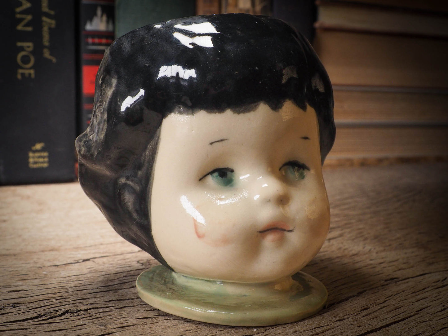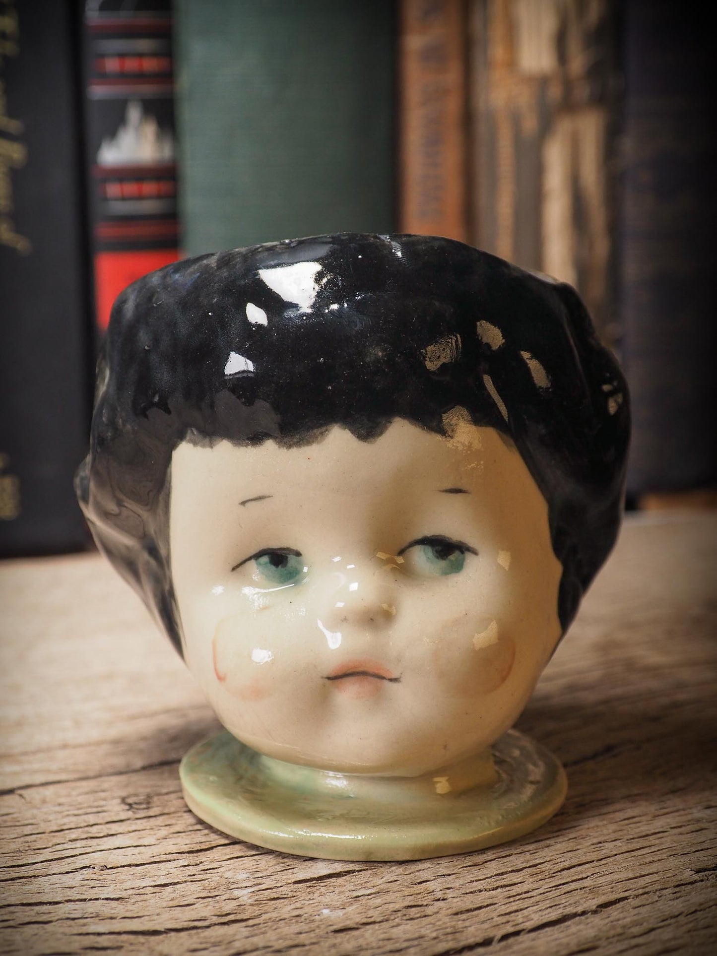Her head acts as a stopper, in case you'd like to keep nice hidden little treasures inside her. I keep my wedding ring inside and other very dear and personal items inside one just like her on my bedroom.