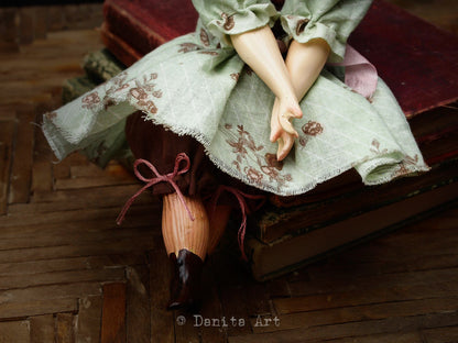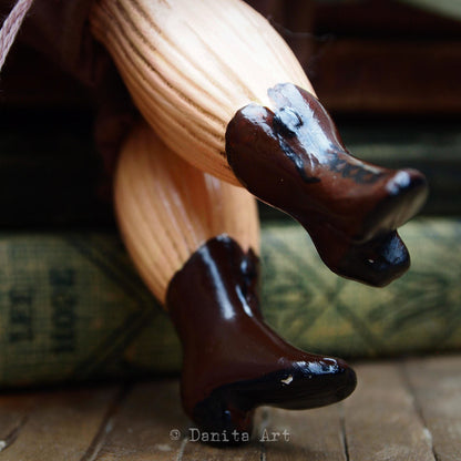 Every doll has a part of myself in her, sometimes I am inspired to make them by my emotions, sometimes on my personality. She is like me, loves to explore the amazing fantasy worlds of books.