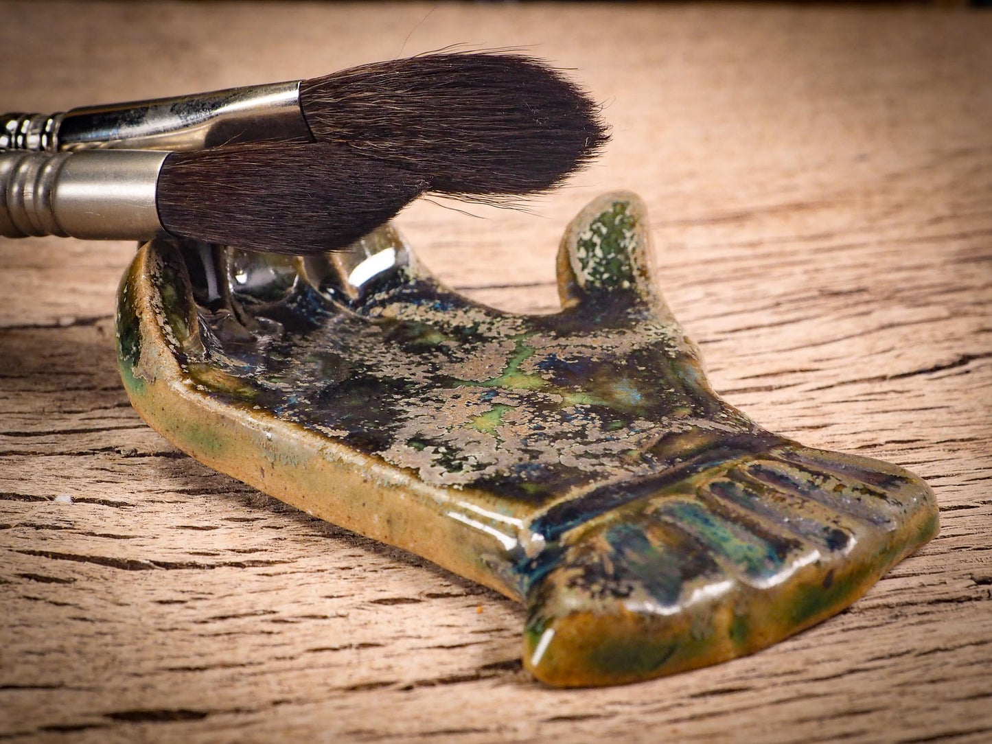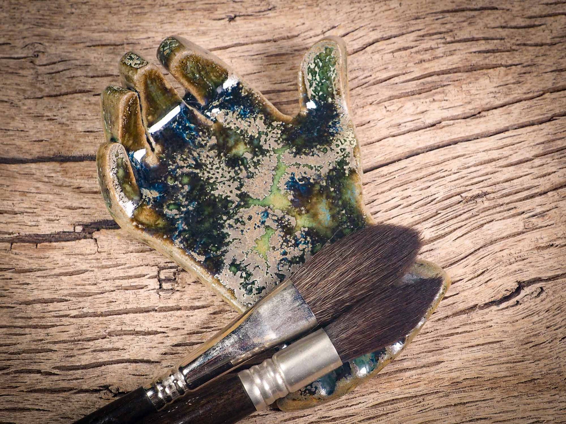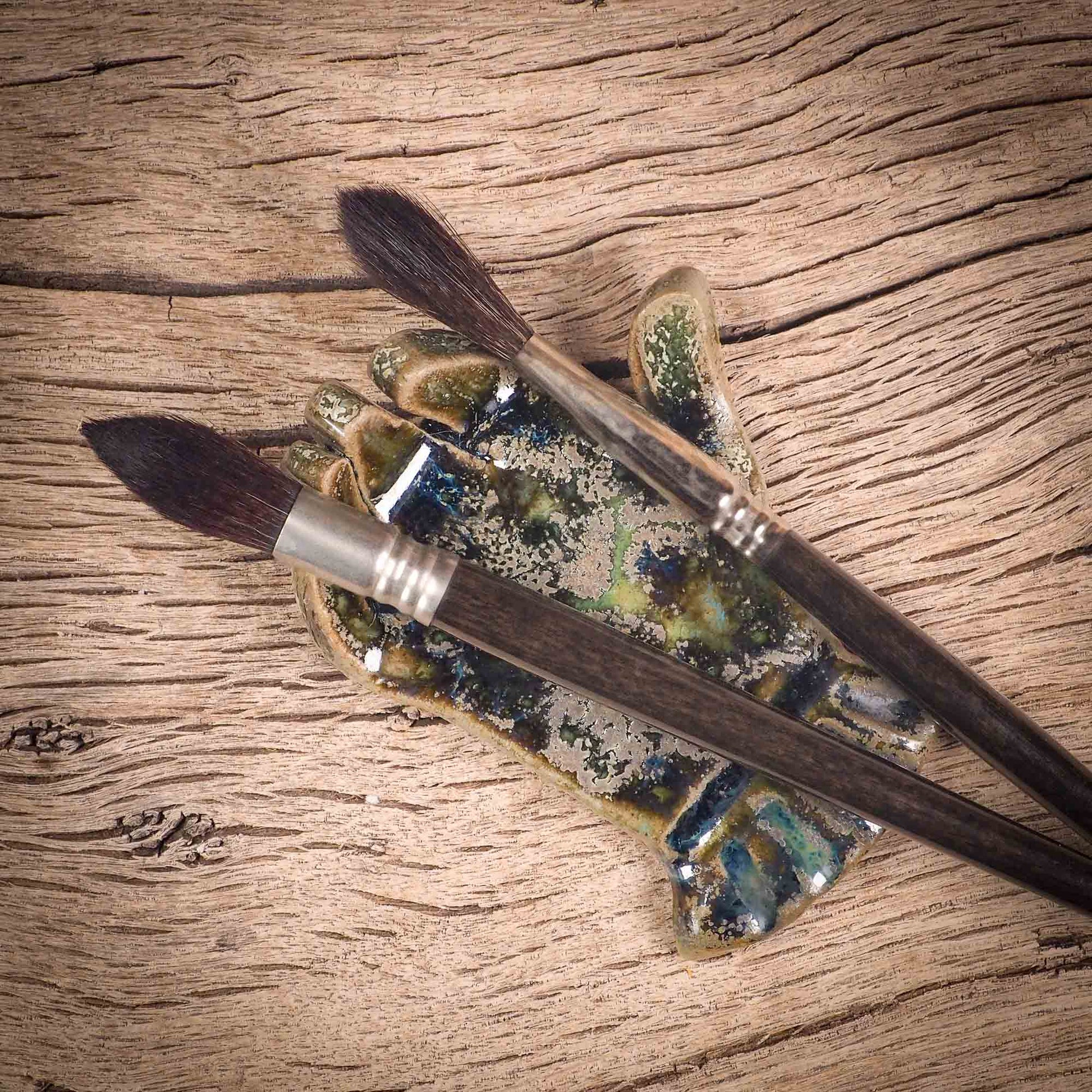 They are made of glazed ceramic to hold your favorite brush. I prefer watercolors, but they can also hold acrylics, inks and oil paints, and can be easily cleaned with water or mineral spirits.