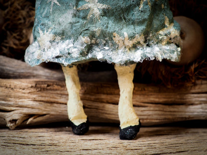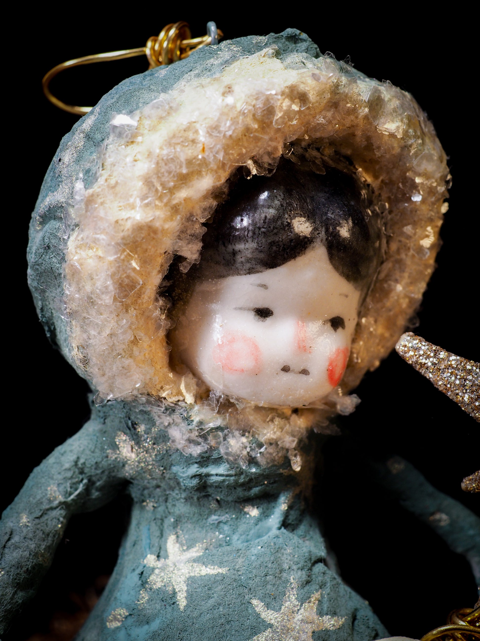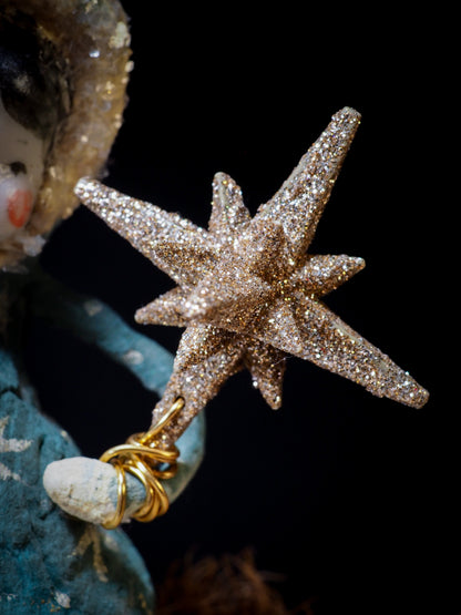 This handmade doll spun cotton doll is 100% handmade by me, Idania Salcido, the artist behind Danita Art. It has a handmade ceramic face, a spun cotton hand painted body and real glass glitter accents.