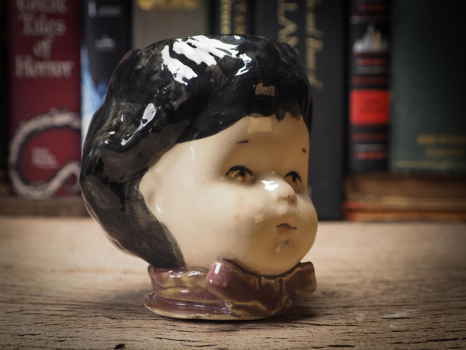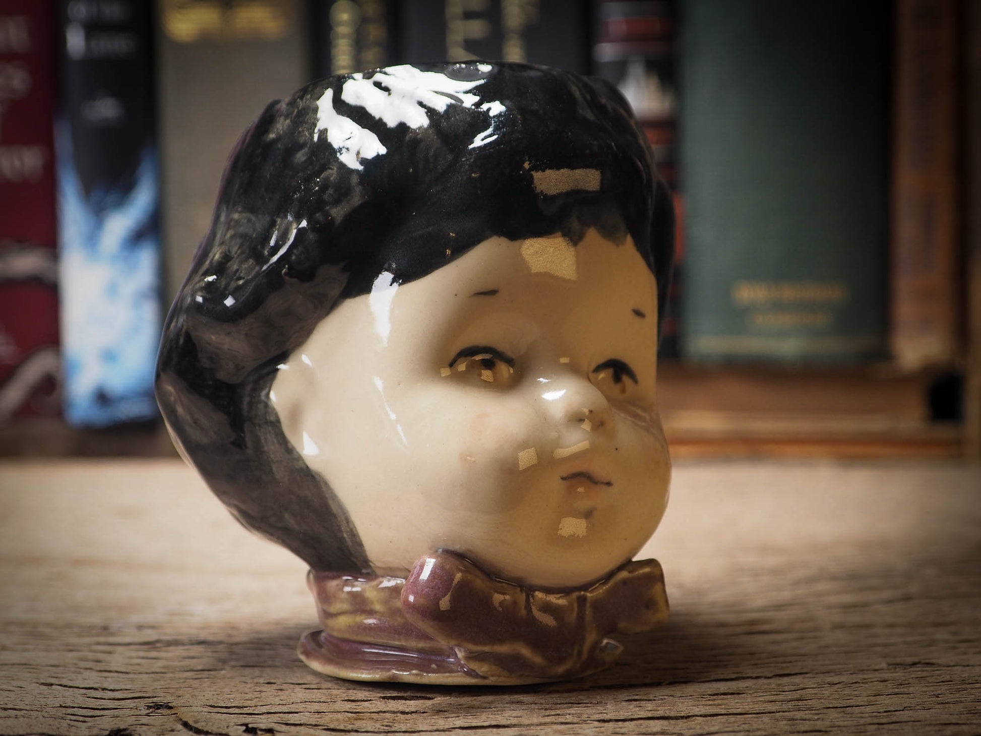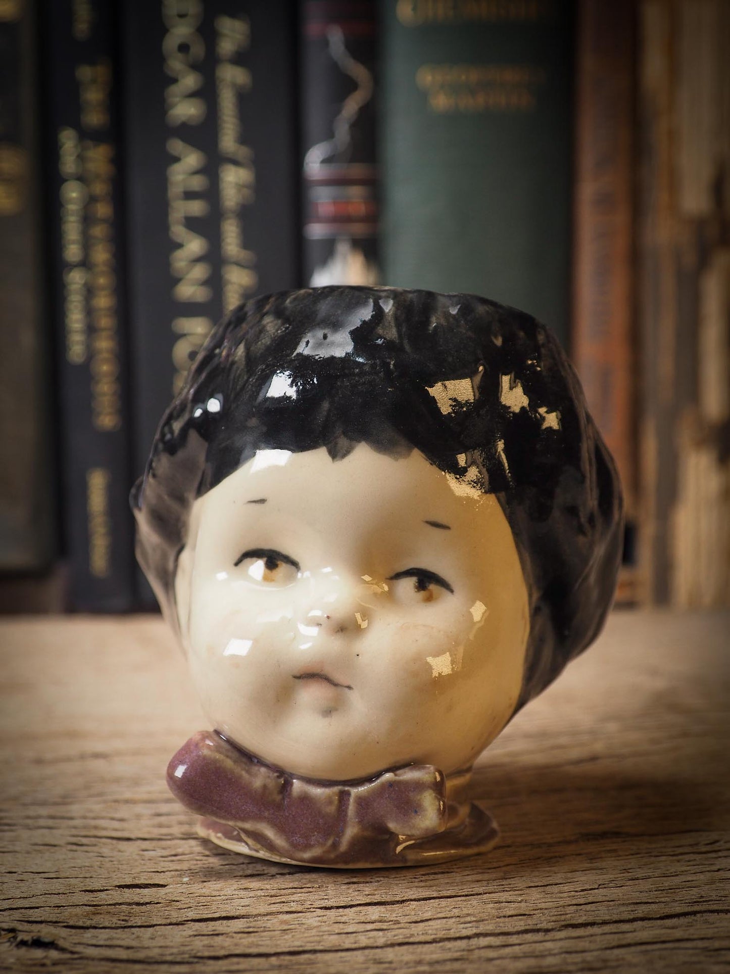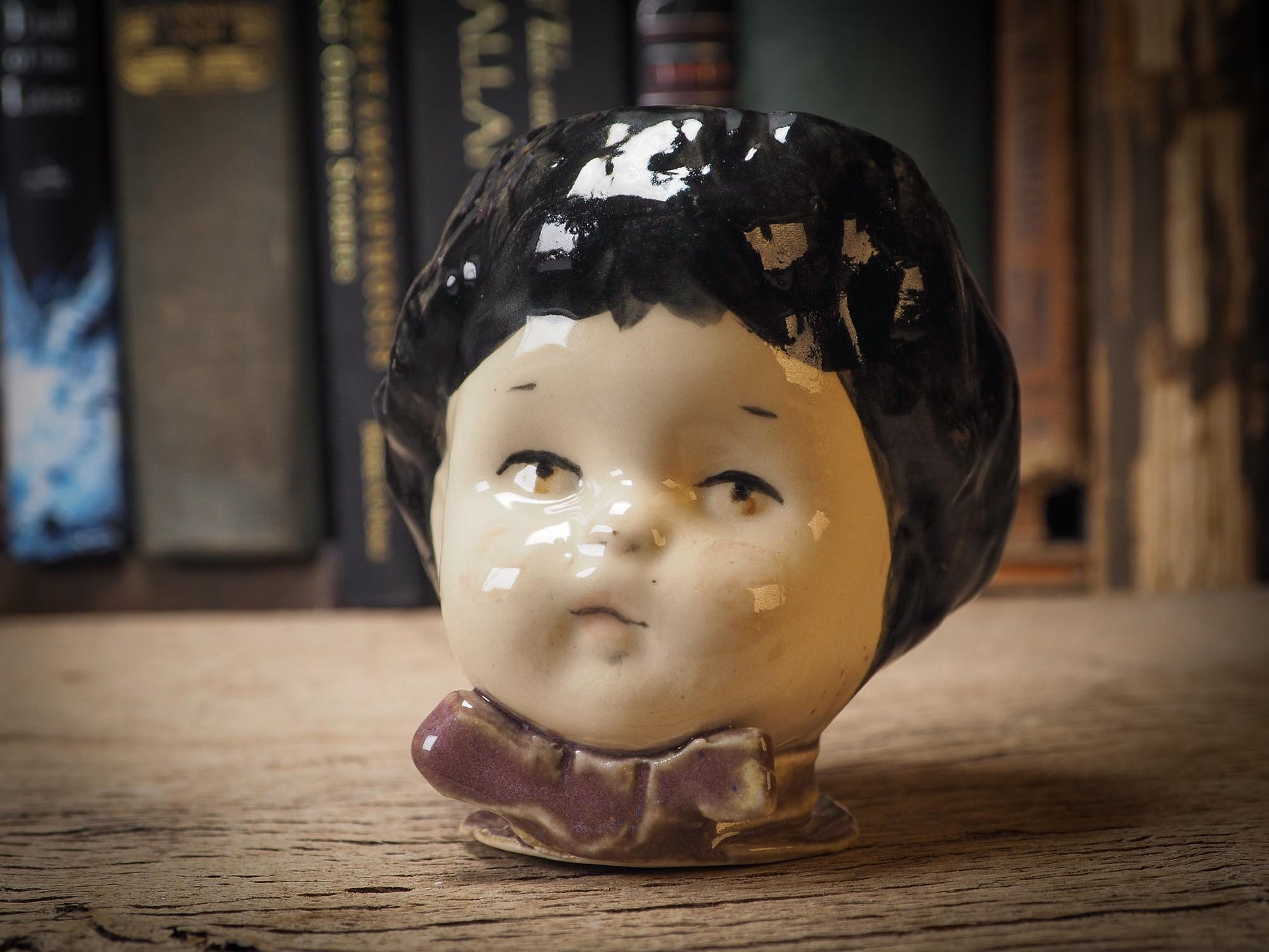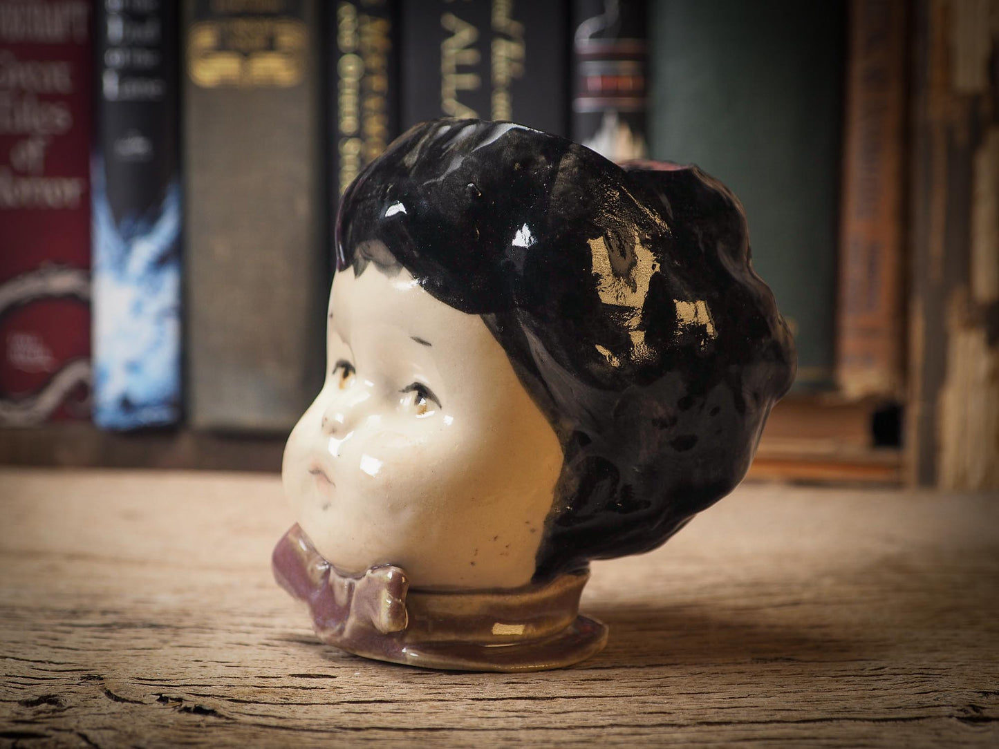 Her head acts as a stopper, in case you'd like to keep nice hidden little treasures inside her. I keep my wedding ring inside and other very dear and personal items inside one just like her on my bedroom.