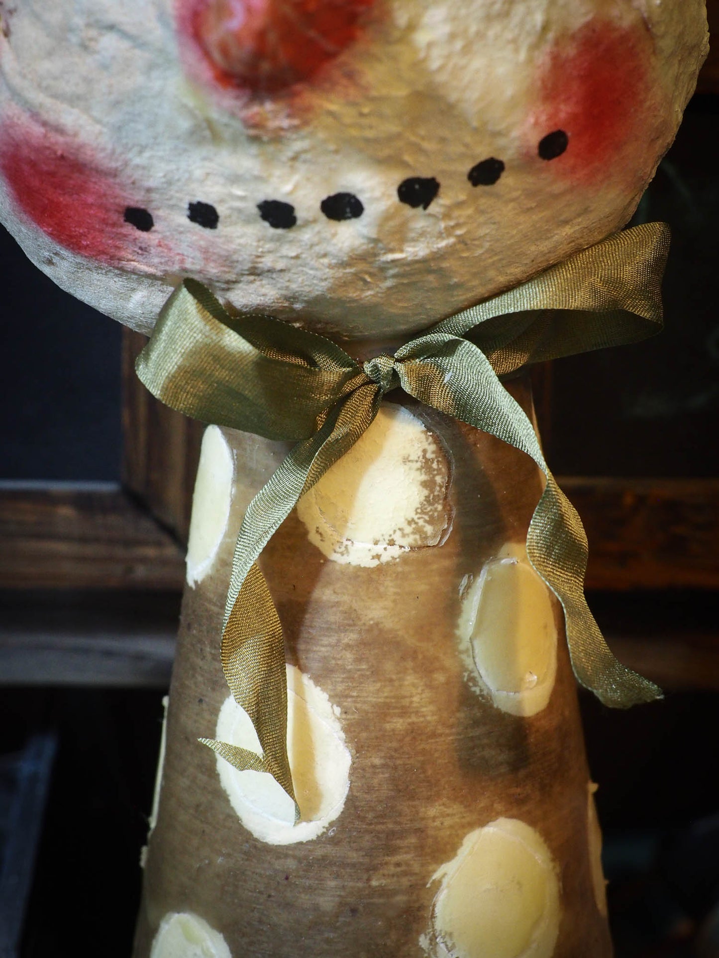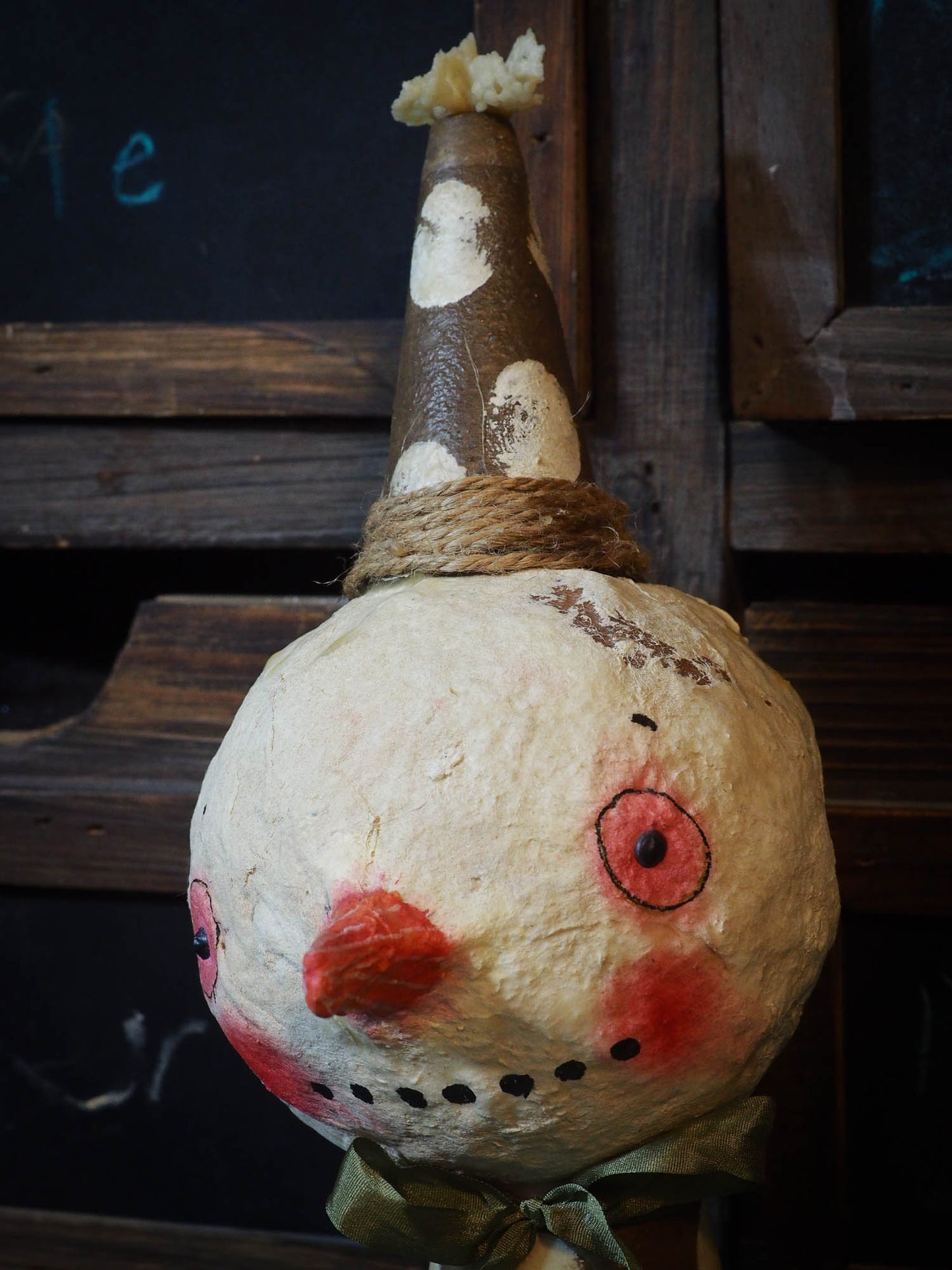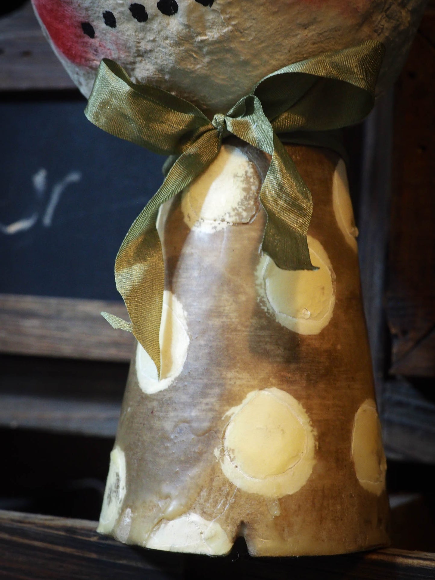 These adorable snowmen are hand made by me, Danita. They are made with paper and then covered with beautiful beeswax. It gives them a beautiful scent of Winter warmth that only Beeswax can create.