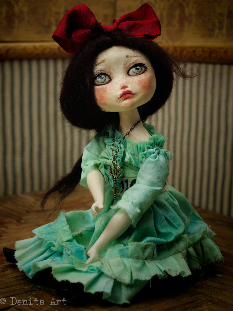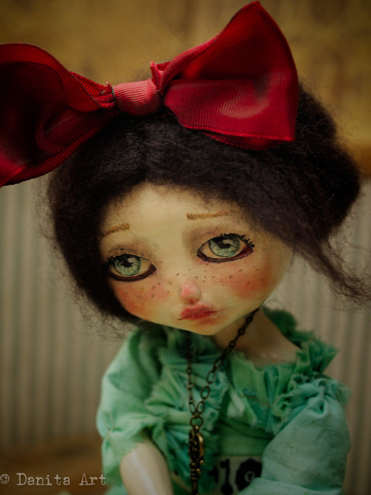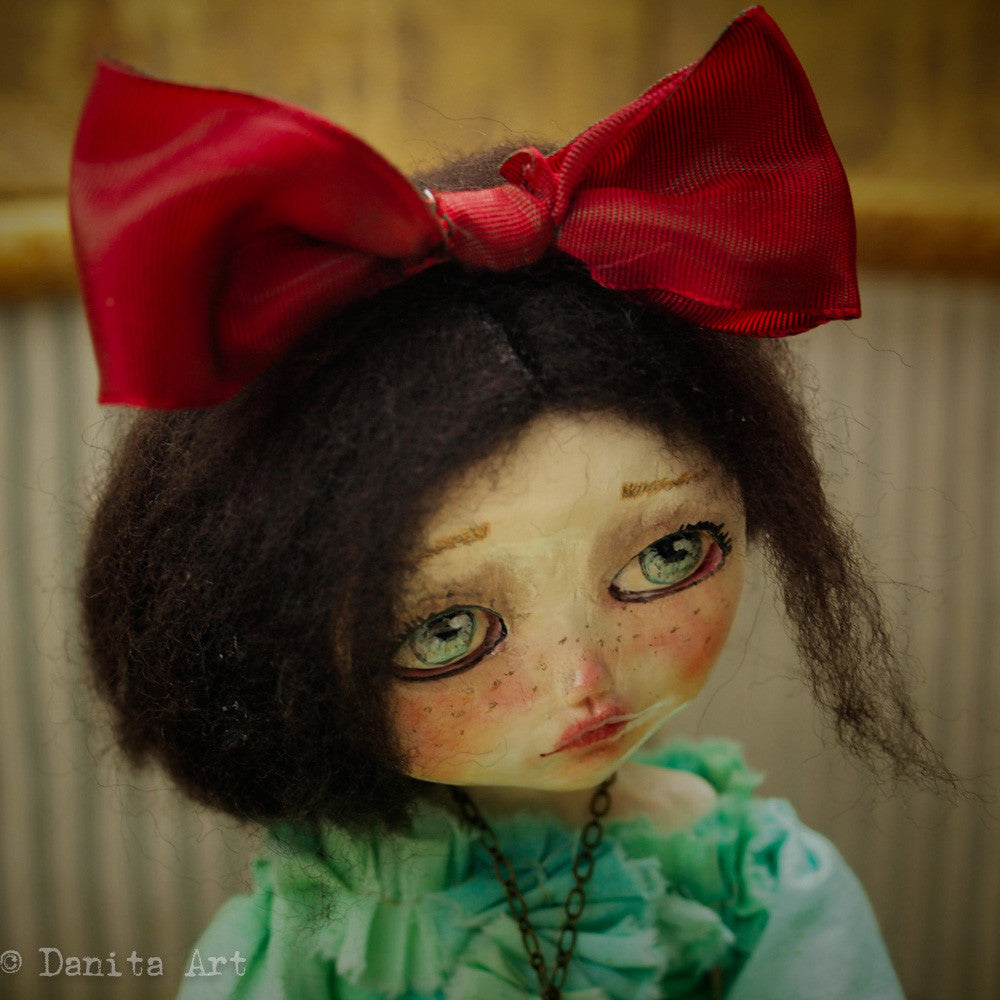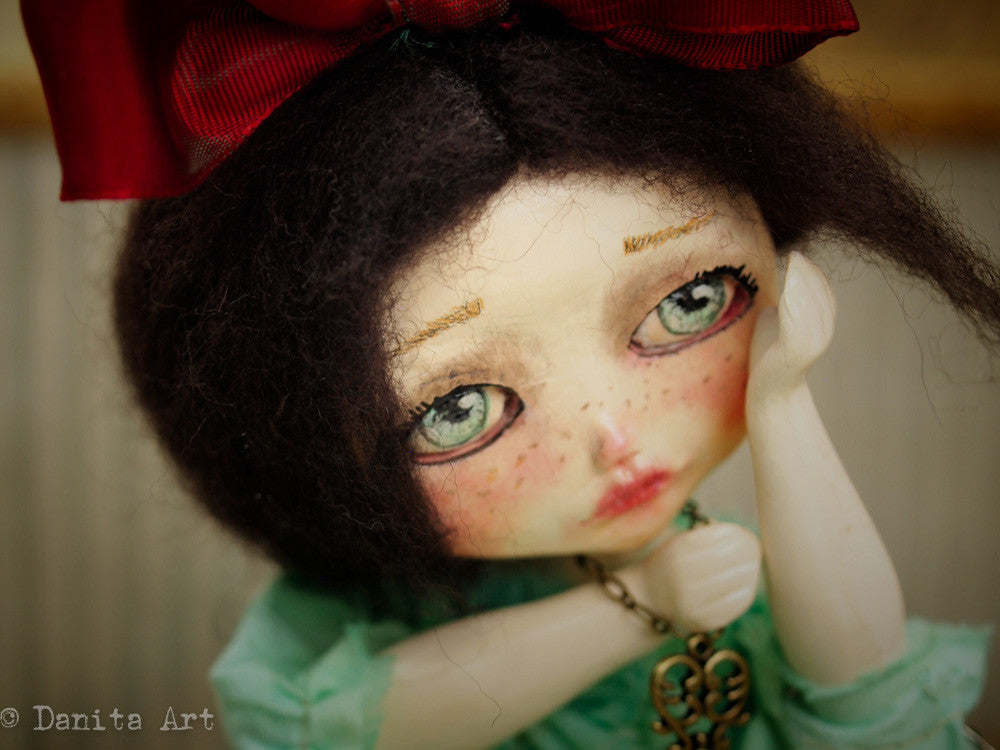 You are looking at an original handmade doll by Danita Art. She has a sculpted paper clay head and an articulated head that you can pose any way you like when you adopt her from my shop.