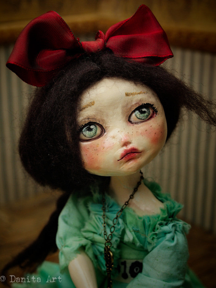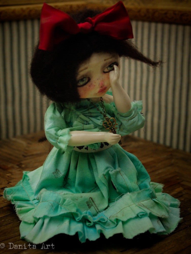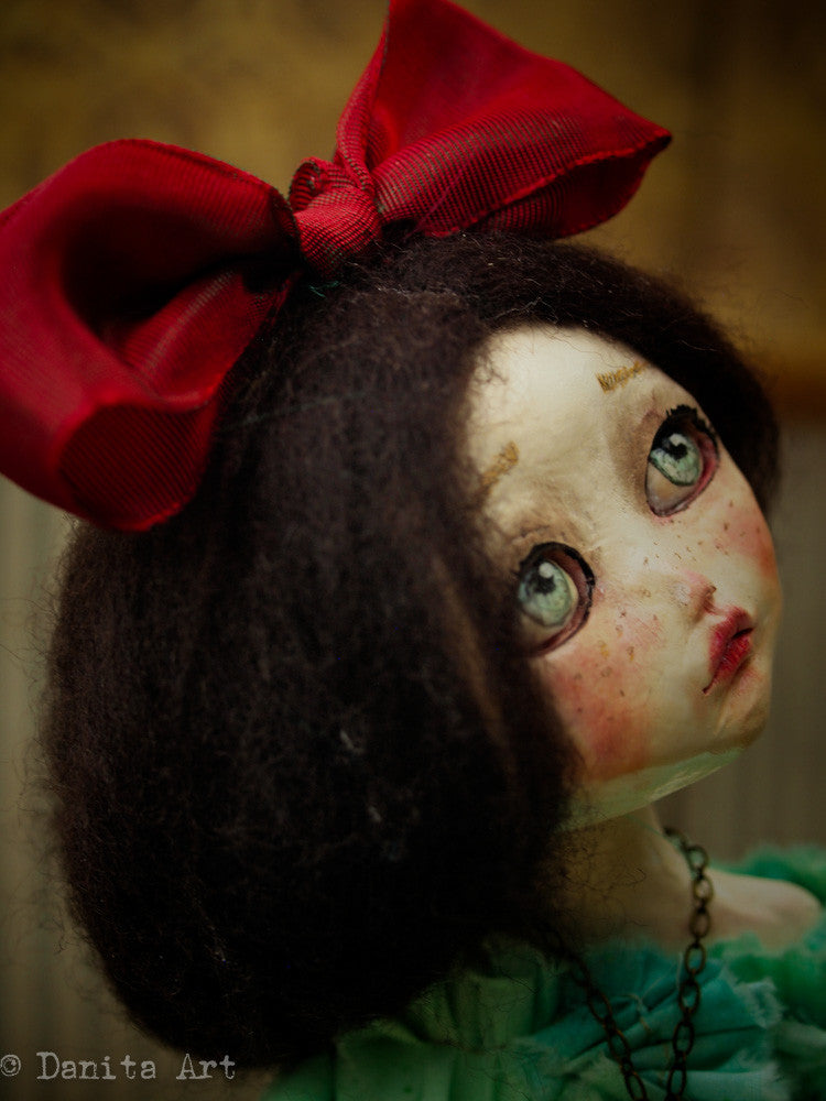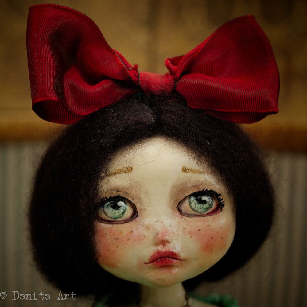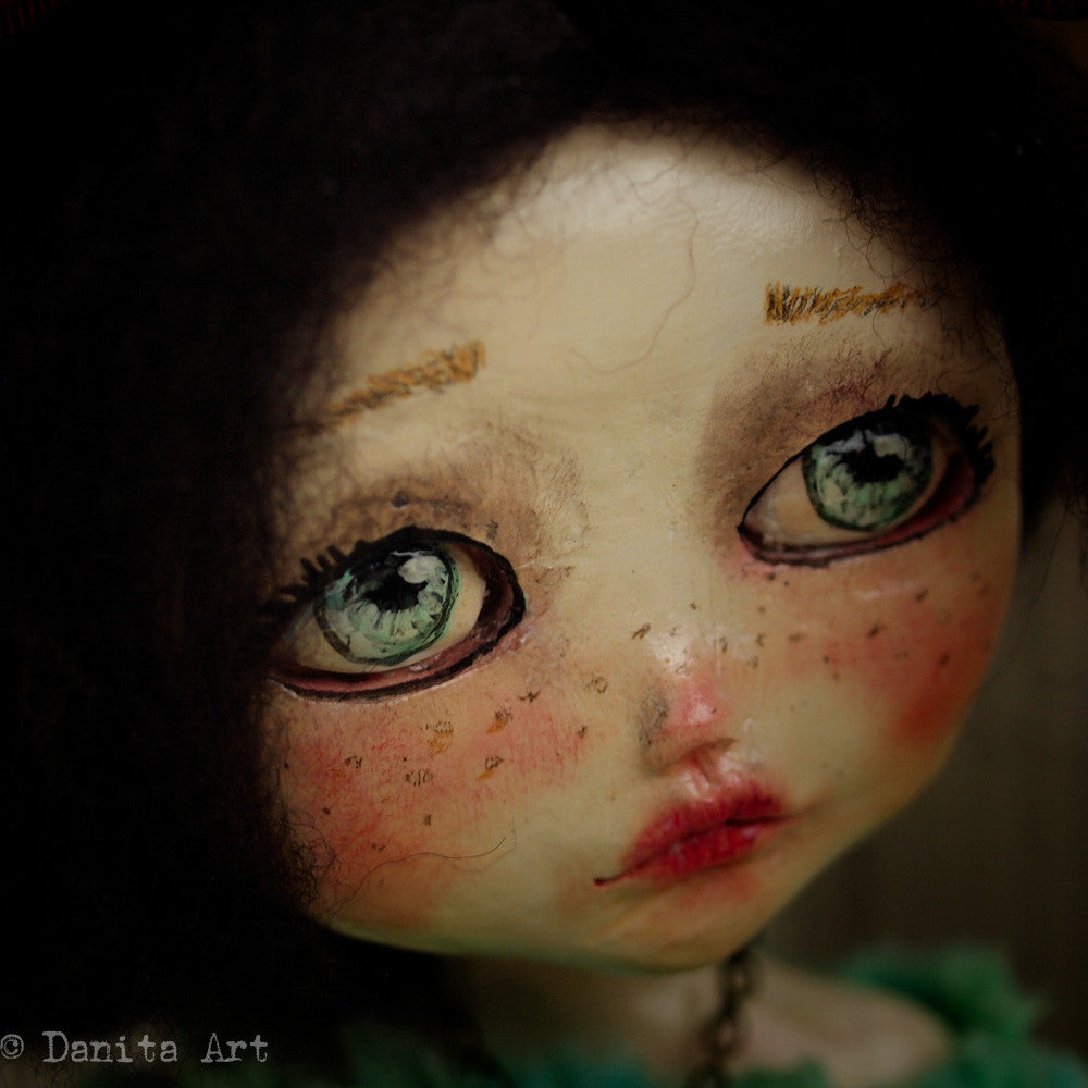You are looking at an original handmade doll by Danita Art. She has a sculpted paper clay head and an articulated head that you can pose any way you like when you adopt her from my shop.