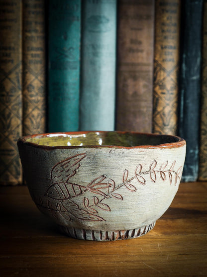 An original Idania Salcido pinched ceramic food or pet bowl, part of an exclusive, limited series of one of a kind art pieces made with locally foraged clay.