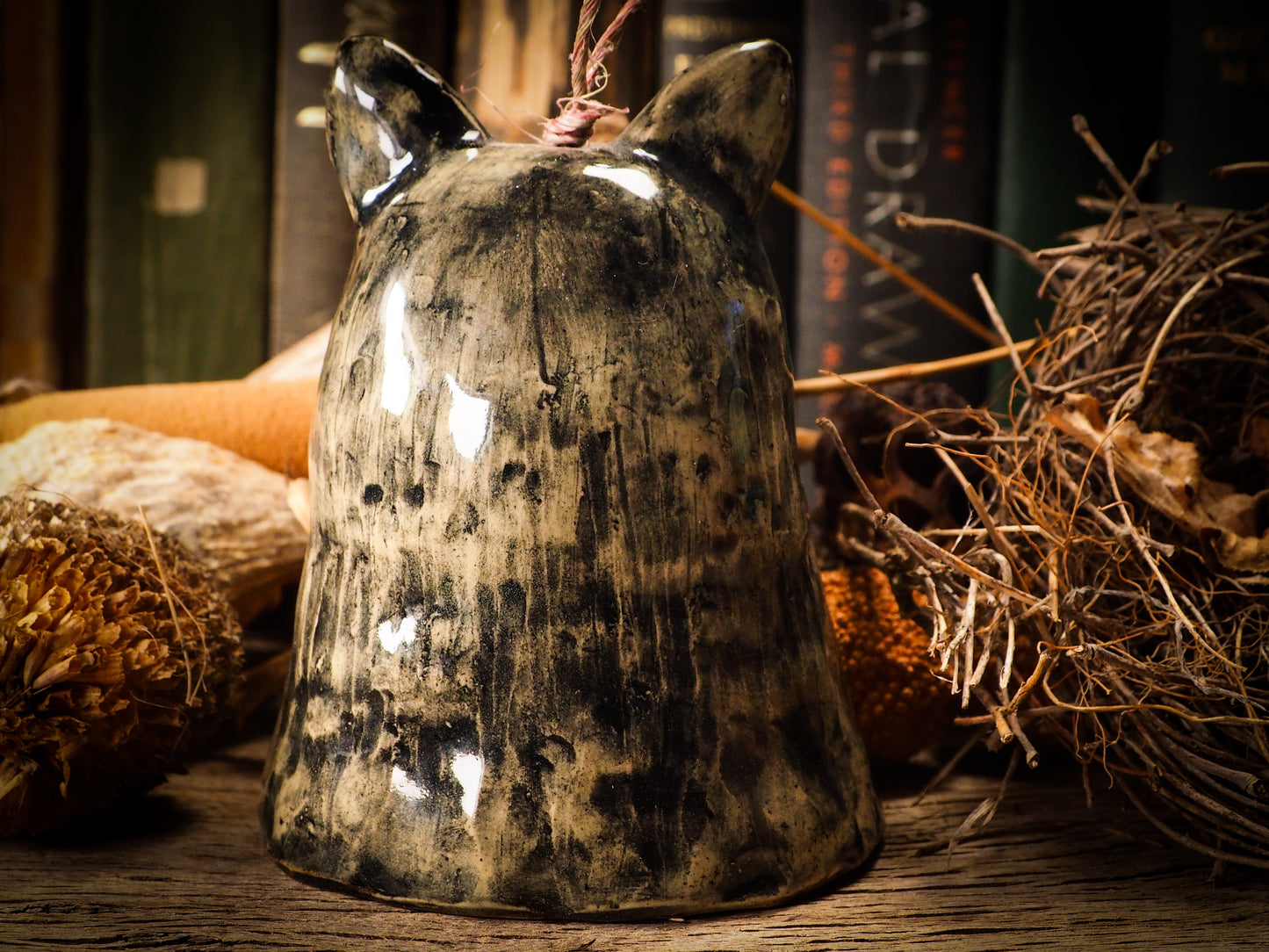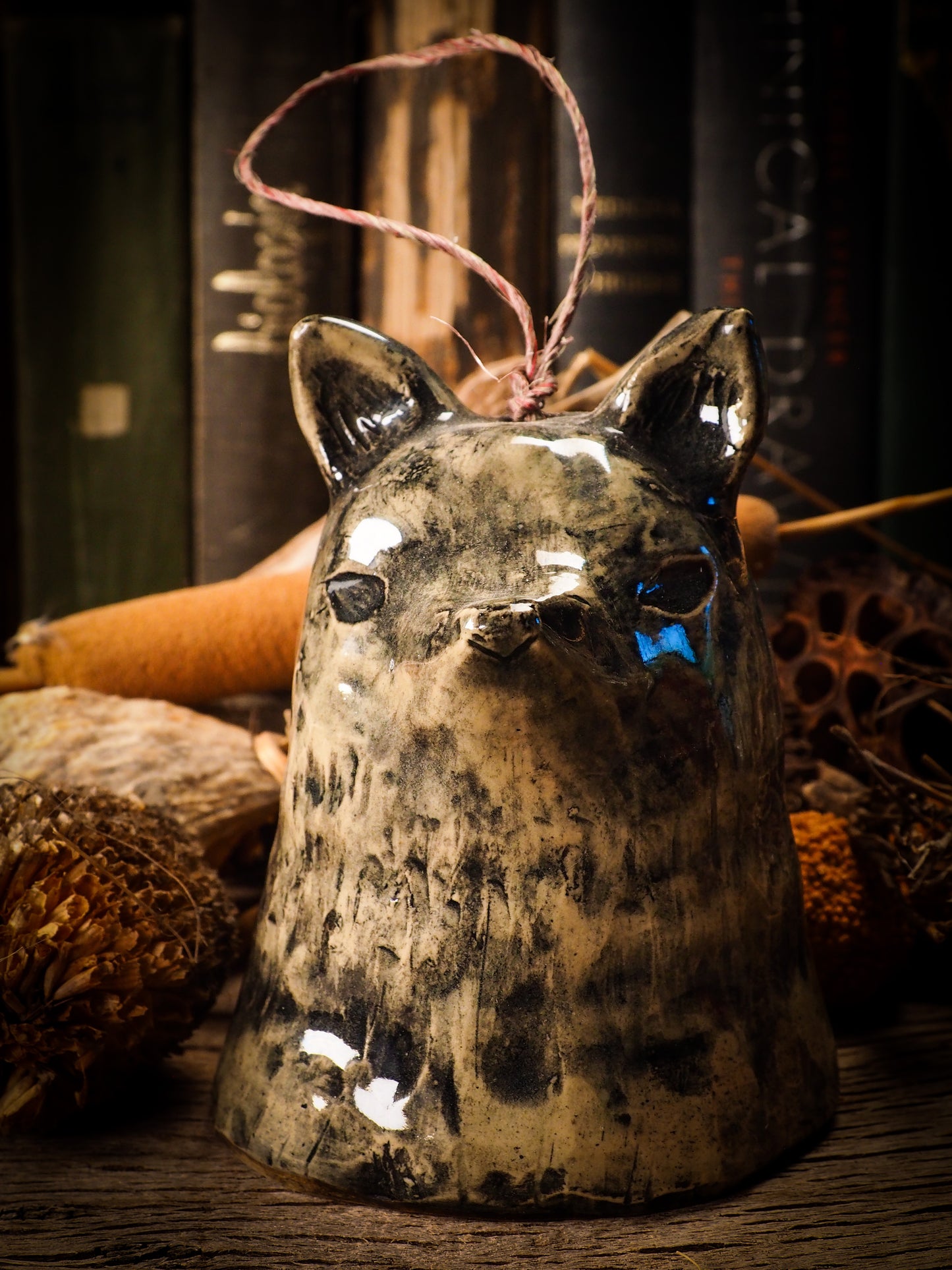 Chimes and bells attract me. I love to hear them ringing when the wind is lightly blowing on the tree in front of my house, I find the sound delightfully soothing! So I decided to create a few of them myself and experiment with animal shapes in ceramic.
