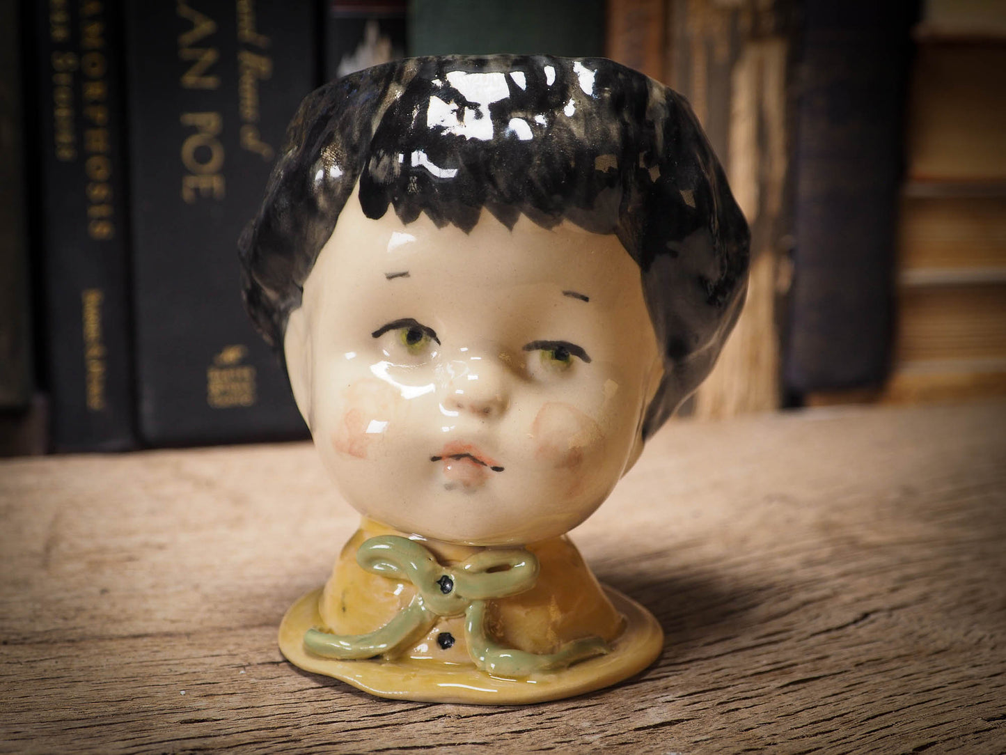 Her head acts as a stopper, in case you'd like to keep nice hidden little treasures inside her. I keep my wedding ring inside and other very dear and personal items inside one just like her on my bedroom.