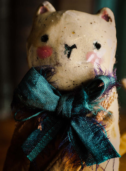 The combination of natural materials creates an amazingly organic feel, it looks like I just found these critters on the forest of Danita Land and I invited them to come and live in my studio while they look for a forever home where they will be loved and cherished in their natural beauty. The clay used on their faces is rough and organic by design, because I love the look of things that are made that way, not flawless, but still perfect in their rough, raw beauty.