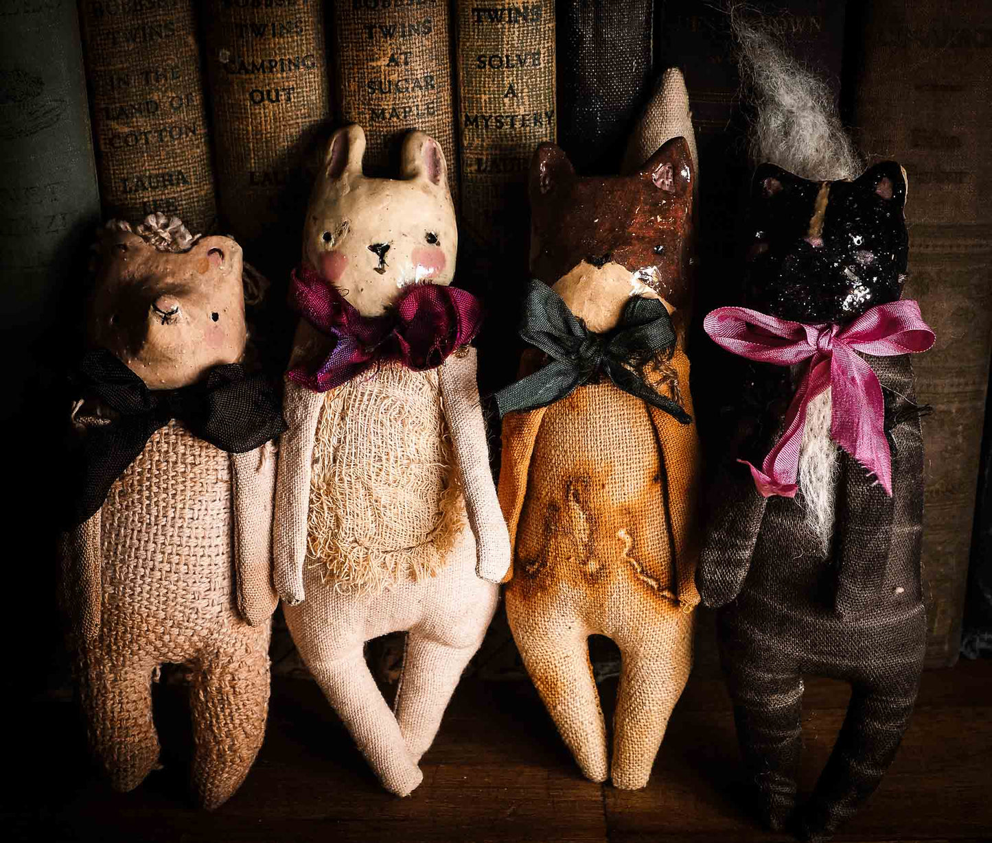 Each doll represents one of my sprit animals. I love to imagine they are filled with the power of the creature they represent as I make them, And I put so much love into them, that a little piece of my should goes to live in each of them.