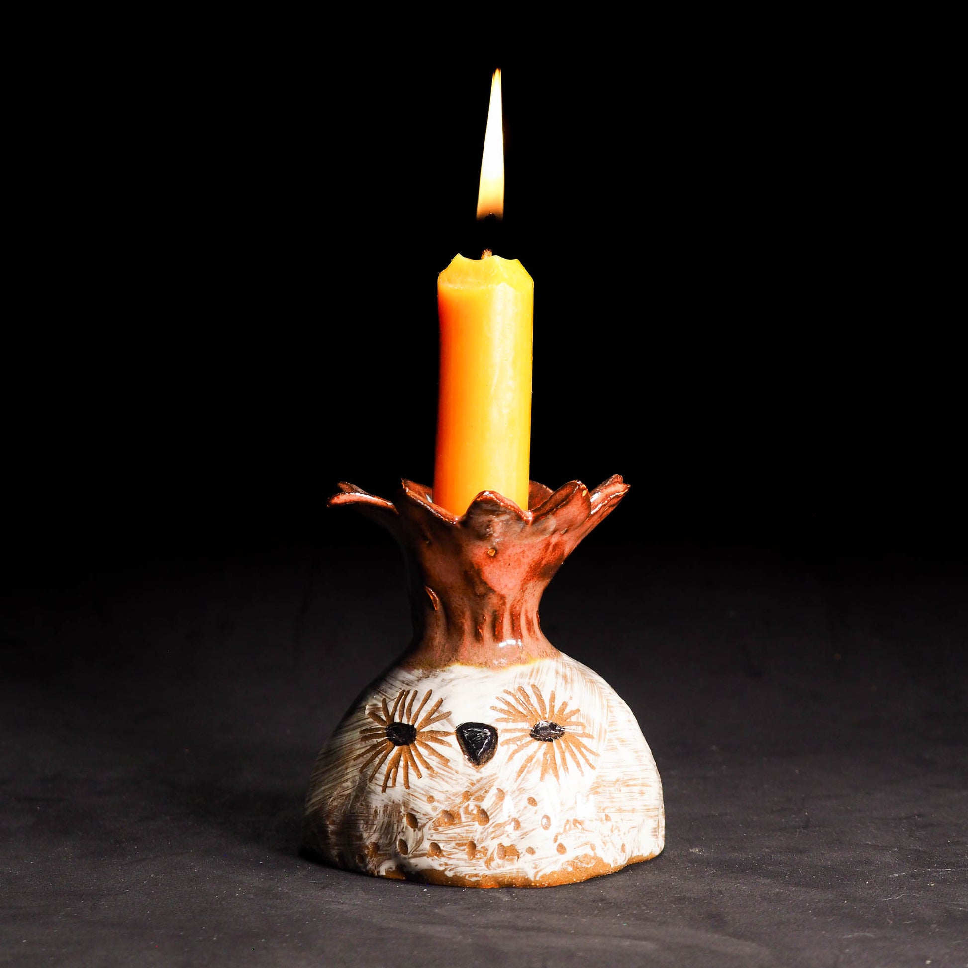 Whether perched on your mantel or watching over your bedside table, this handmade ceramic owl candle holder is a hoot-worthy addition to any space. It's a testament to the artist's skill and a guaranteed conversation starter. So, embrace the whimsy, ignite the candle, and let this wise little owl illuminate your world with quirky charm. Get ready to have a hootin' good time!