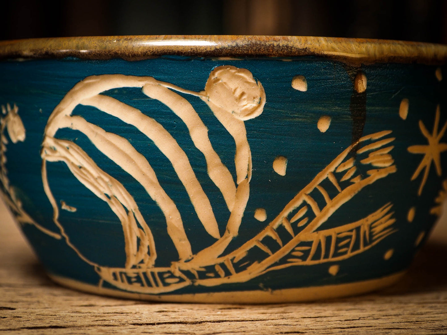 You are looking at original handmade ceramic Christmas and Holiday fire glazed ceramic piece by Idania Salcido, the artist behind Danita Art. Hand made with glazed stoneware at Idania's ceramic studio, the bowl measures approx. 4 x 4 x 3 inches tall and it is hand painted by the artist.