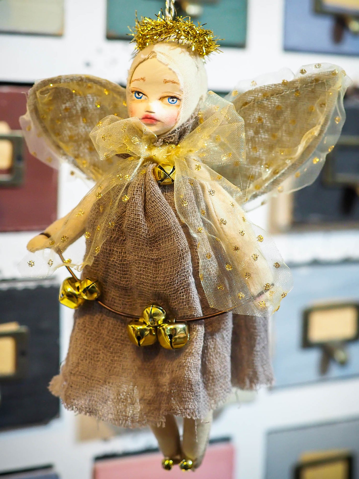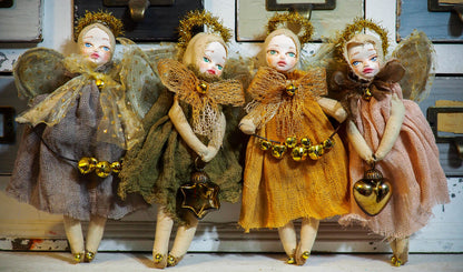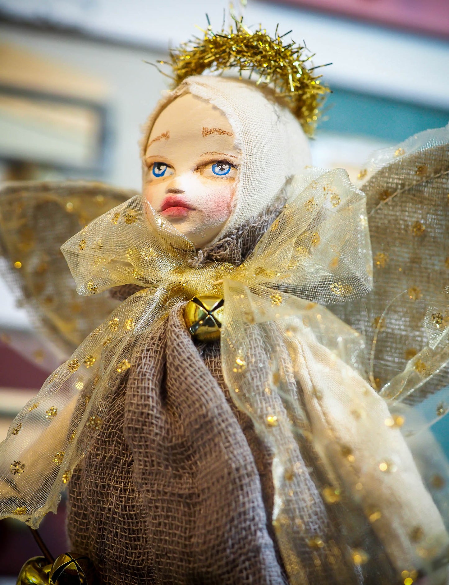 This beautiful holiday angel is completely hand crafted by Danita in her studio, using sculpted faces she paints by hand, giving each doll a unique personality.