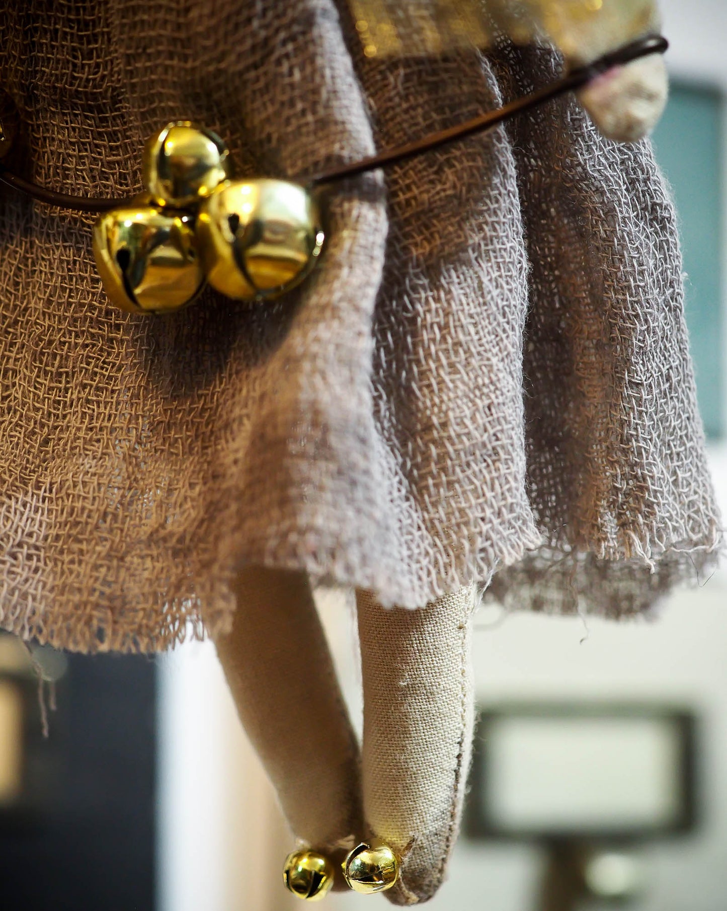 The dress in this doll is hand dyed using natural pigments that Danita extracts from flowers, fruits and seeds, and they have a very organic and natural aged and distressed look.
