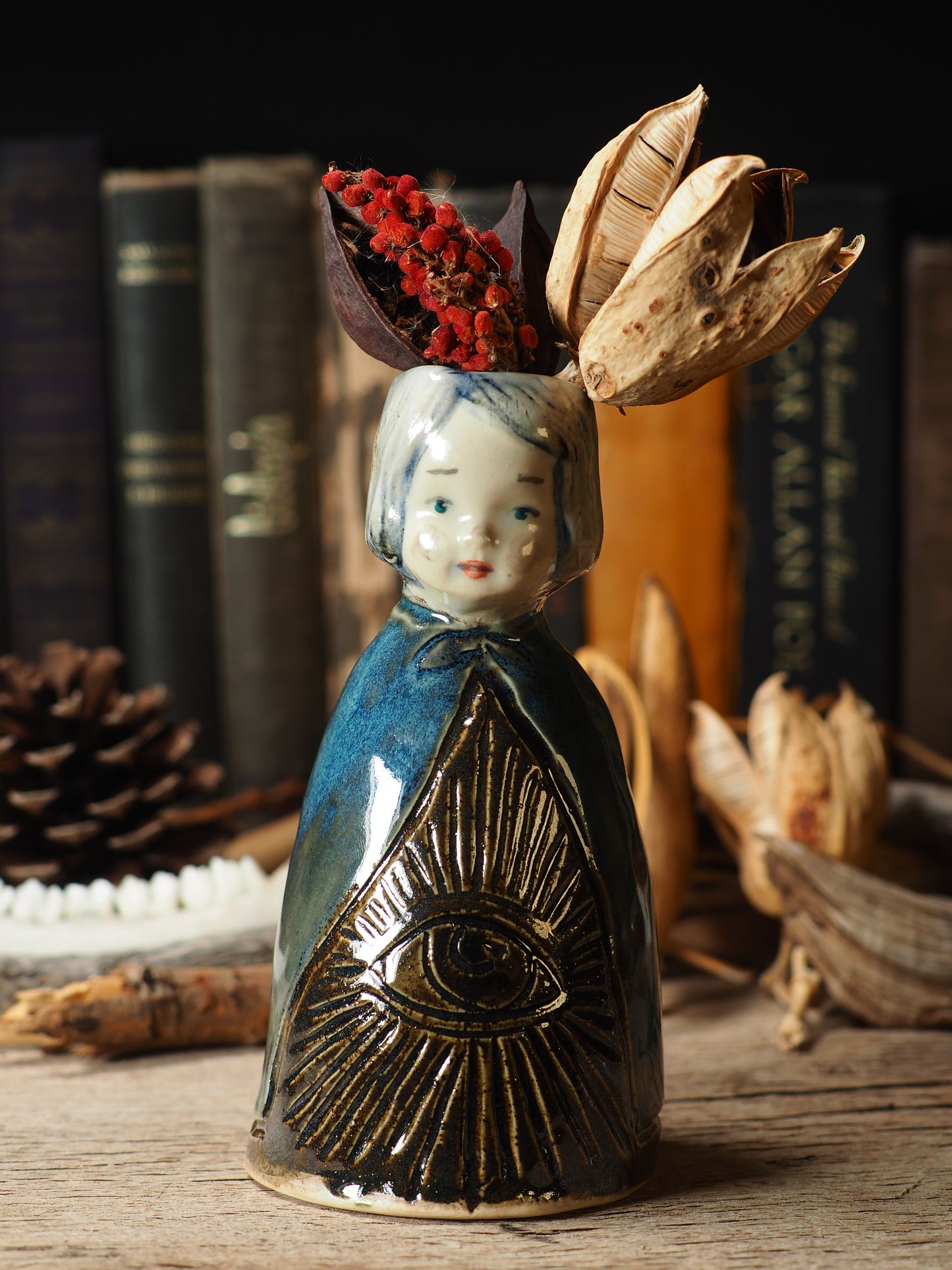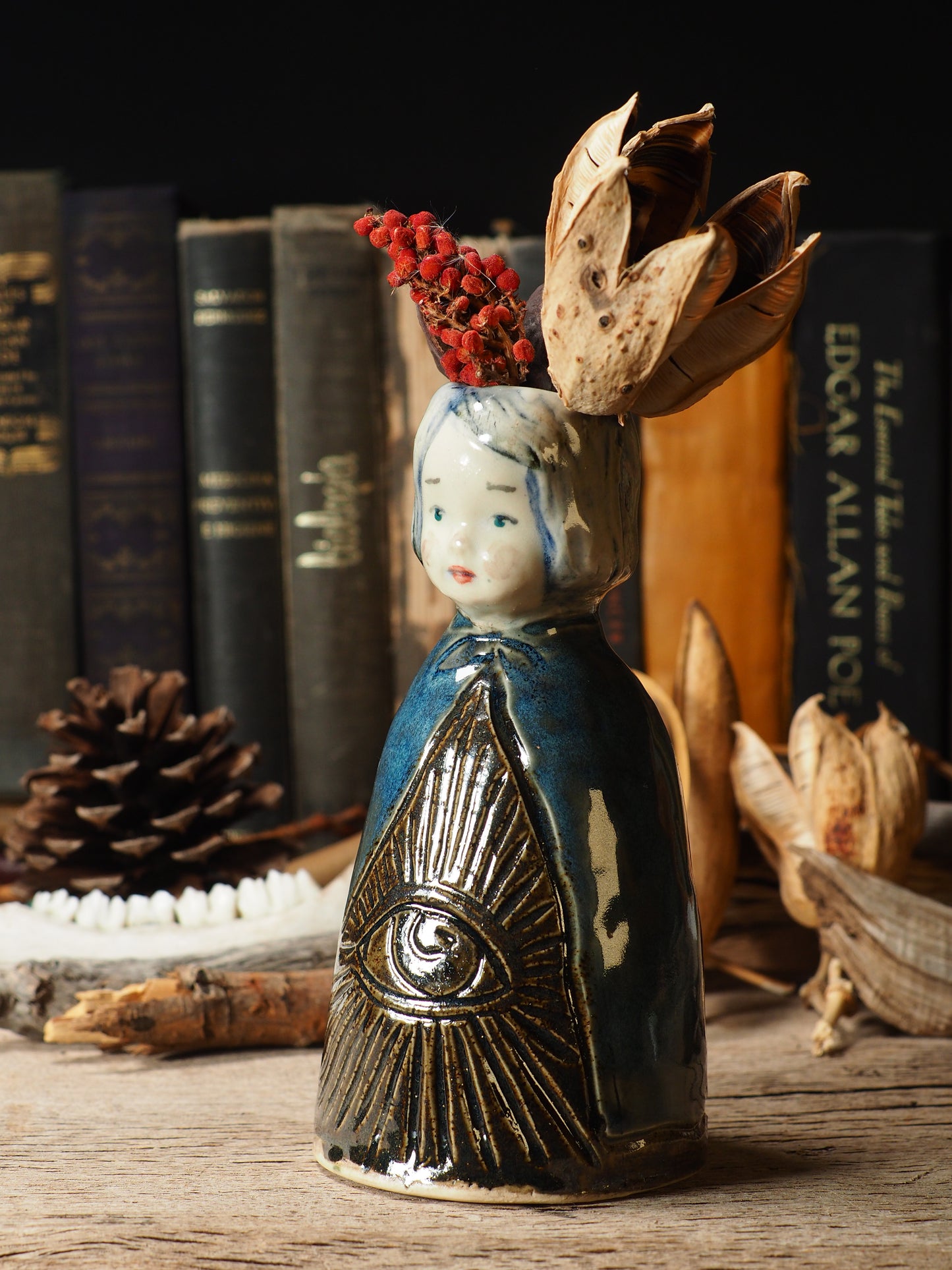 You are looking at an original handmade ceramic vase by Idania Salcido, the artist behind Danita Art. Each one is a unique work of art on itself, inspired and designed by me, Danita Art. It is a homage to the mystical world, hand built by me, glazed and fired on my old school kiln.