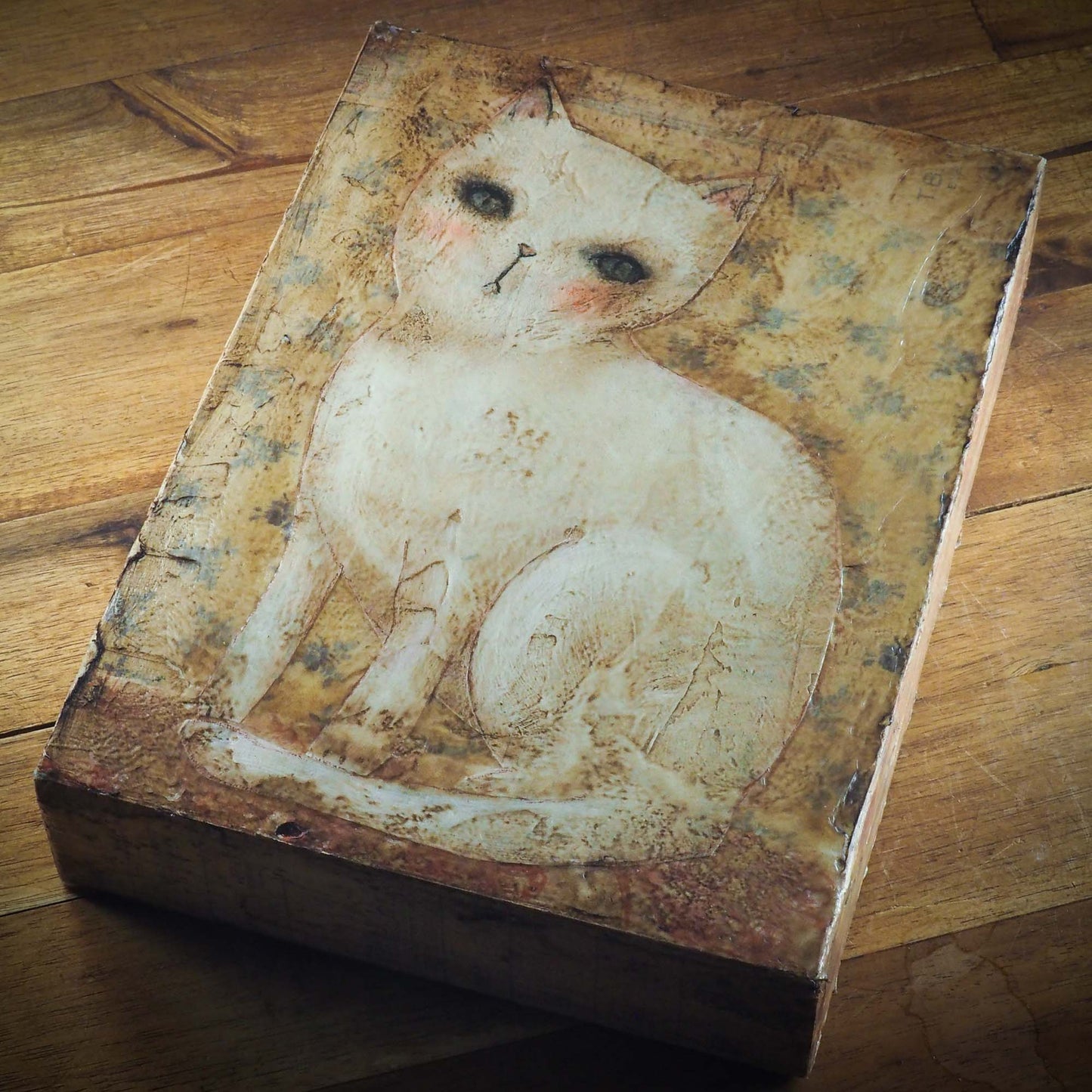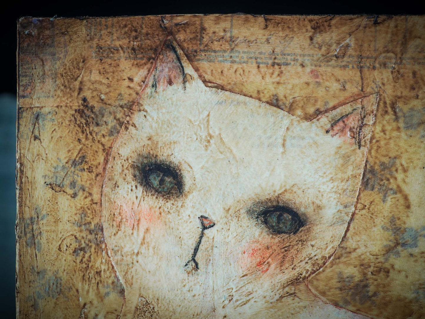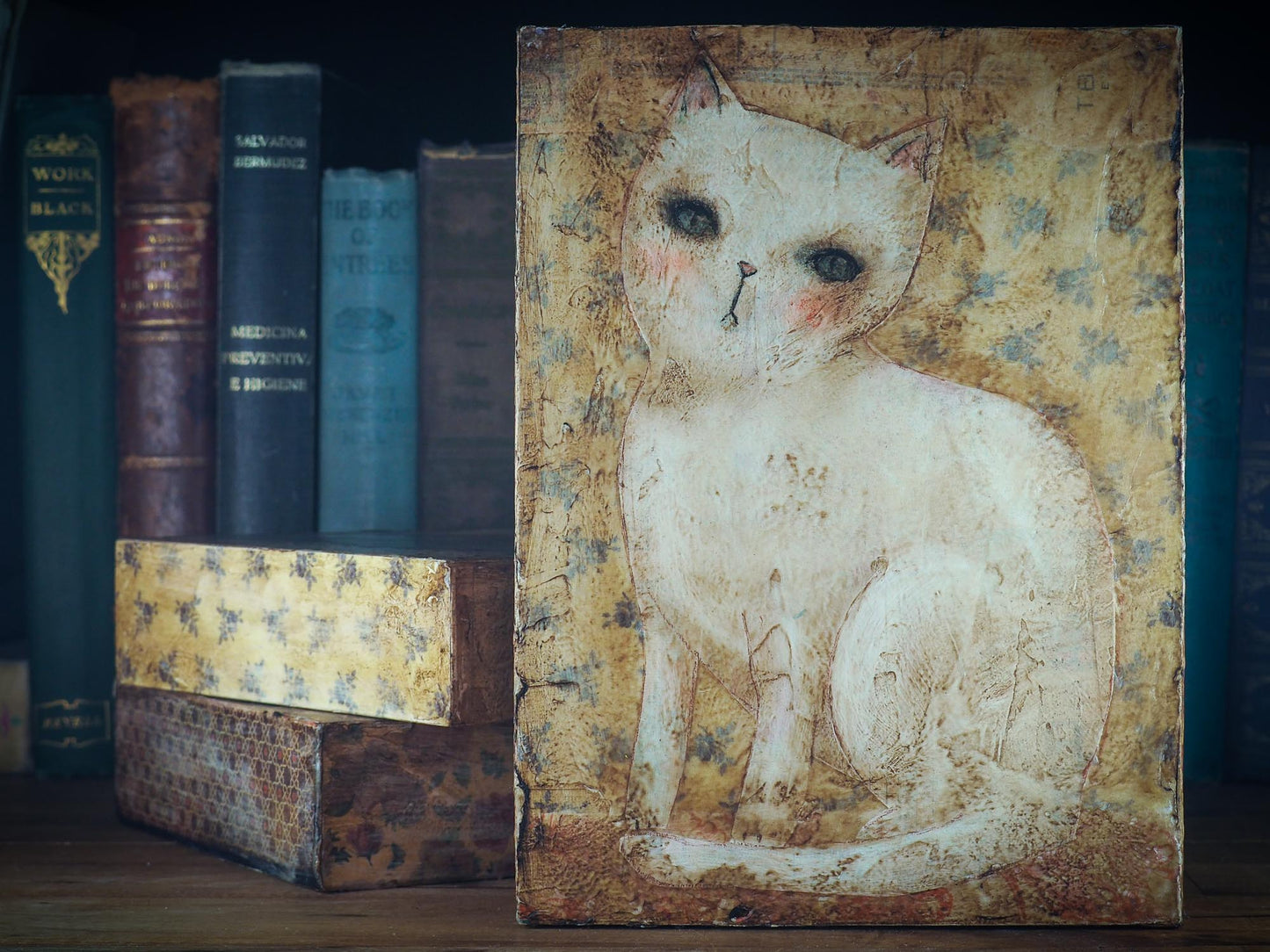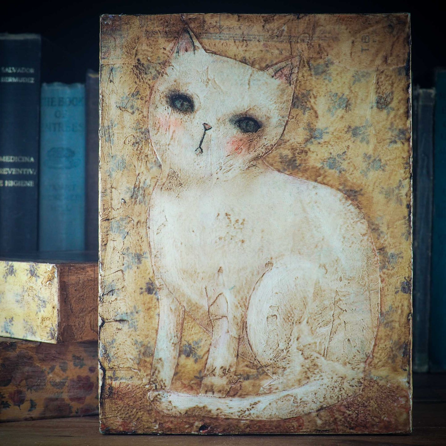 This is an original cat painting by Idania Salcido, the artist behind Danita Art.