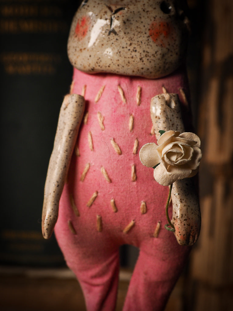 The combination of natural materials creates an amazingly organic feel, it looks like I just found these critters on the forest of Danita Land and I invited them to come and live in my studio while they look for a forever home where they will be loved and cherished in their natural beauty. The clay used on their faces is smooth and soft because of the porcelain I use, and it has a weathered crackled surface to make them look worn and loved for a very long time.