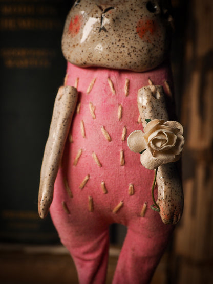 This adorable handmade fabric mini figurine art doll was made by me, Idania Salcido, the artist behind Danita Art.