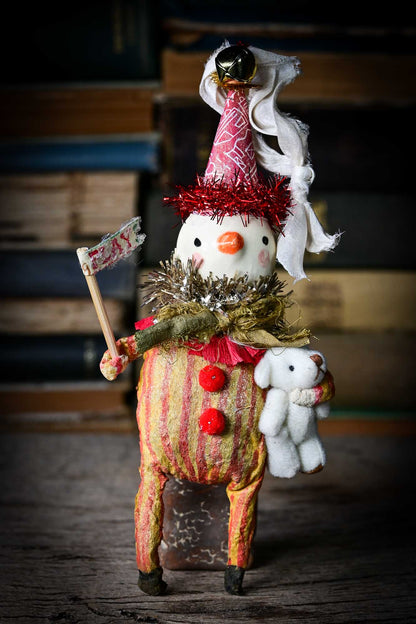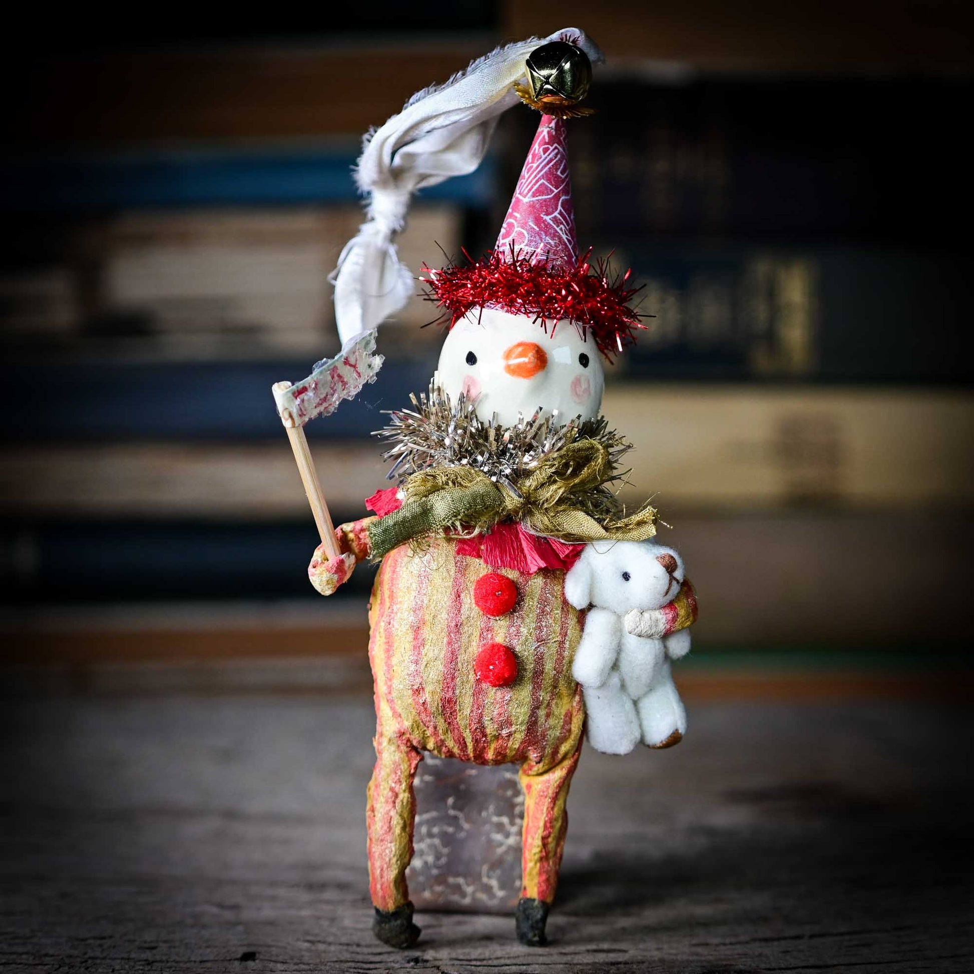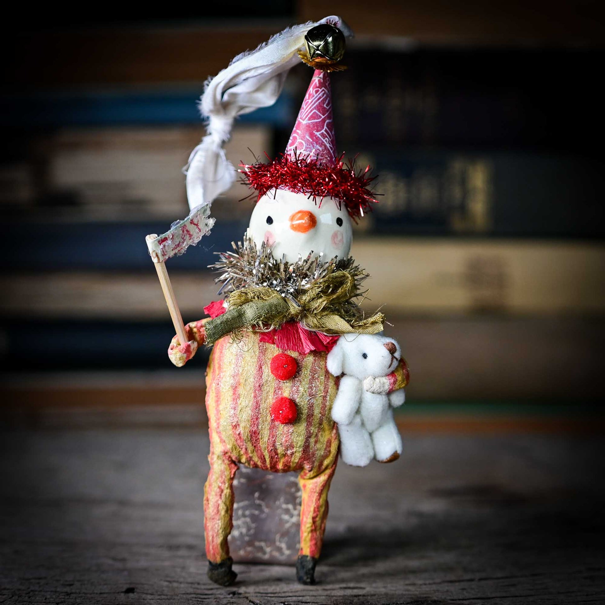 This original spun cotton handmade art doll by Idania Salcido loves to hang around my Christmas tree while he waits to be adopted. Made by me in my studio using spun cotton, vintage papers, found items and a special, custom handmade ceramic head, he will be very happy to hang from your Holiday Tree on Christmas Day.