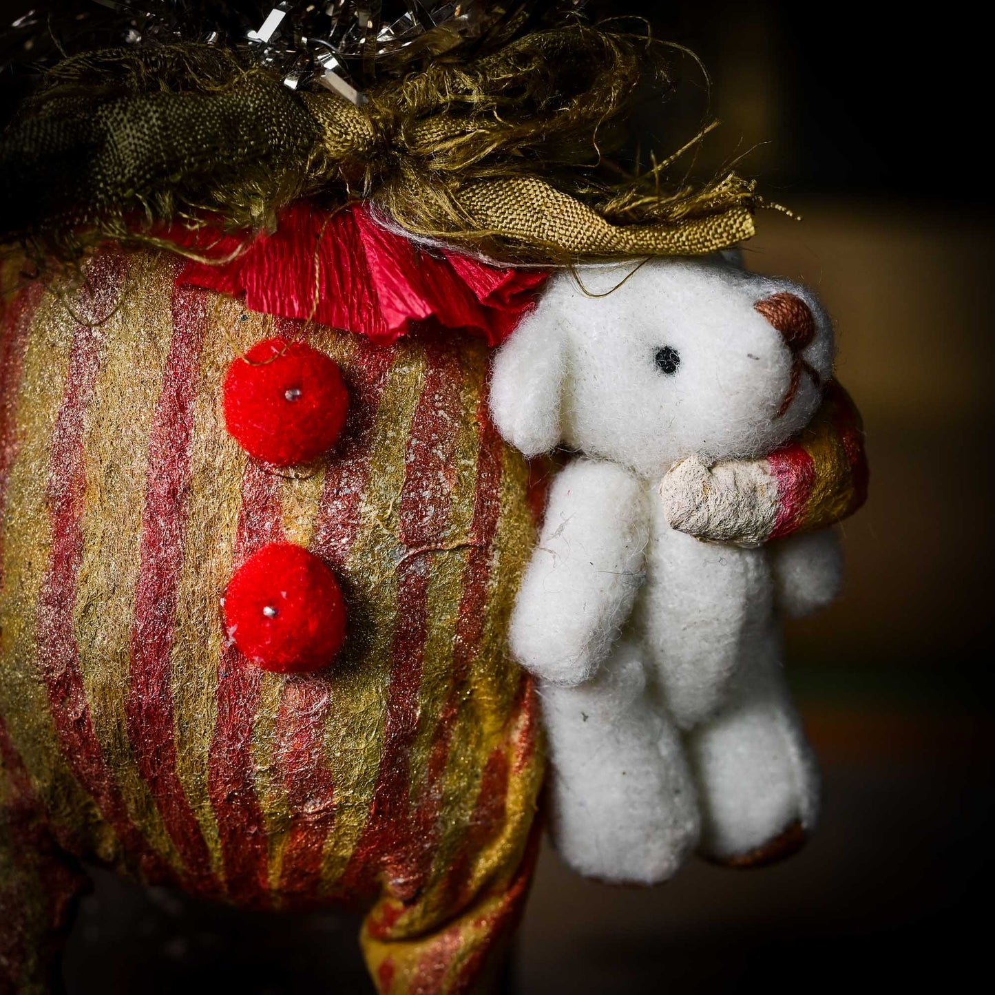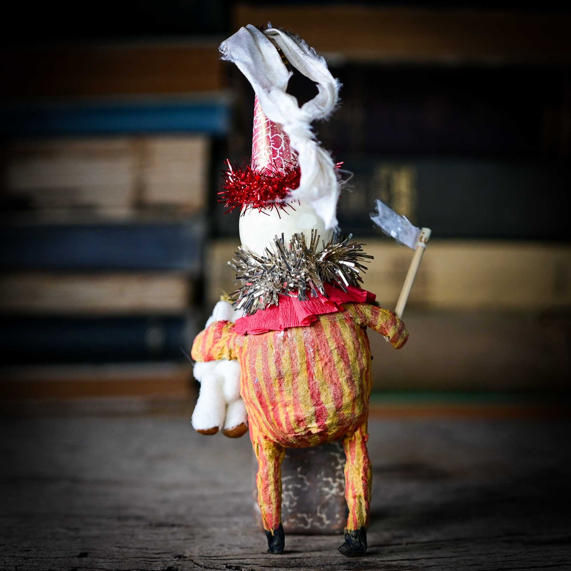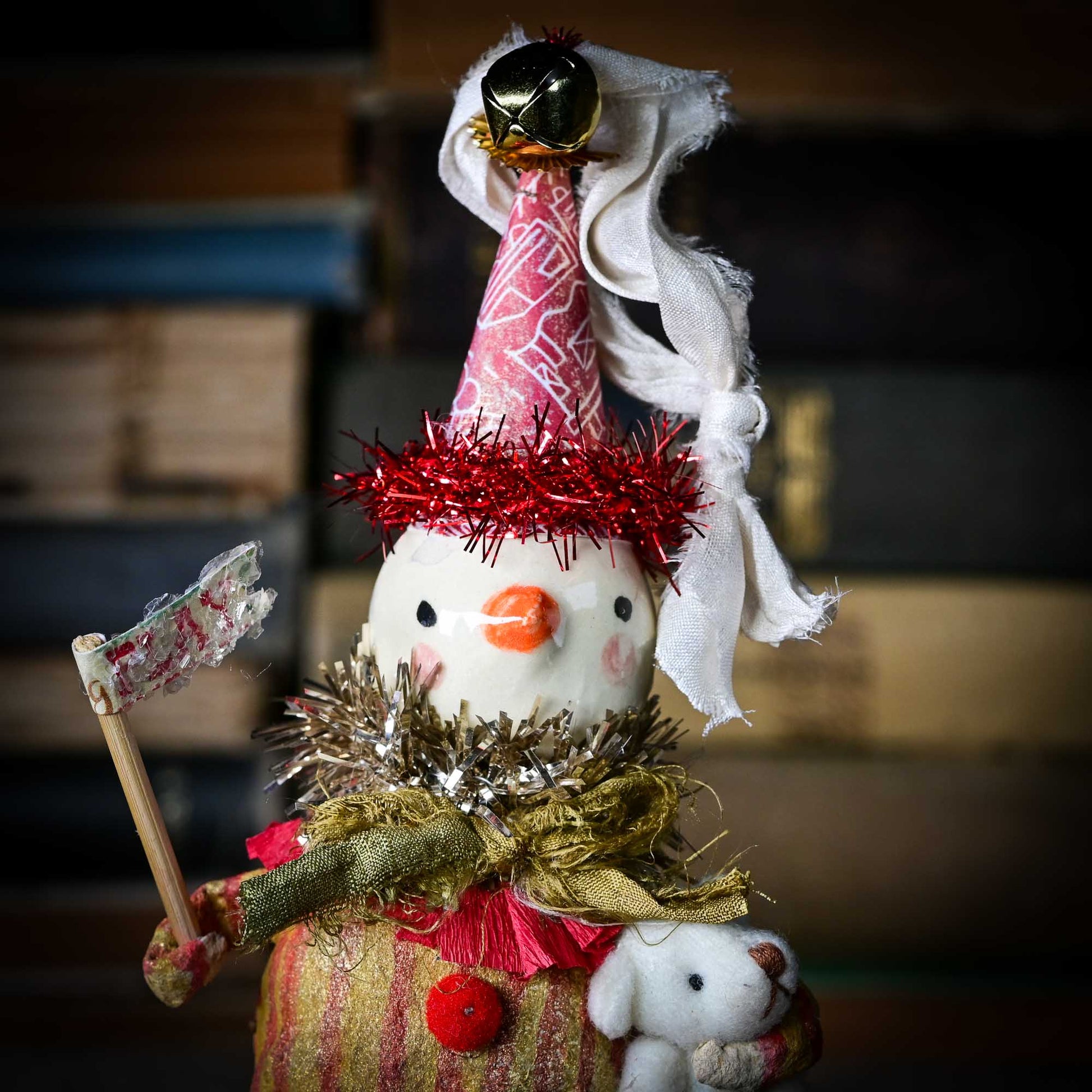 This original spun cotton handmade art doll by Idania Salcido loves to hang around my Christmas tree while he waits to be adopted. Made by me in my studio using spun cotton, vintage papers, found items and a special, custom handmade ceramic head, he will be very happy to hang from your Holiday Tree on Christmas Day.