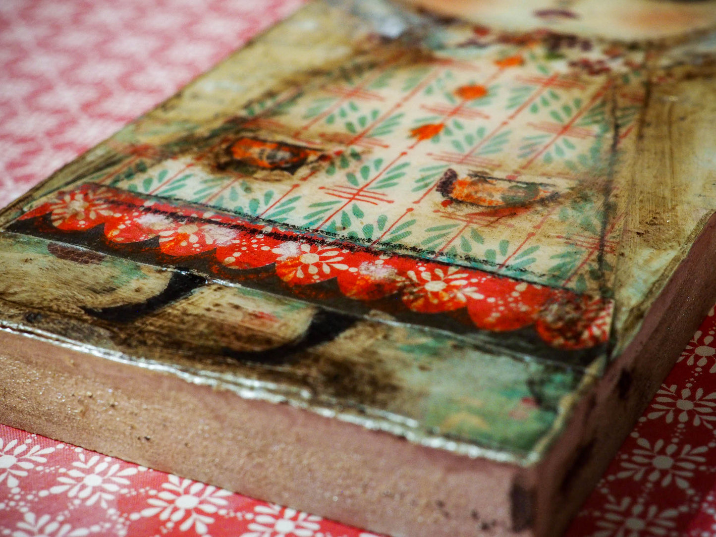 I made these original mini-collage paintings just in time for Christmas. Each painting is a Danita Art original ready to hang.