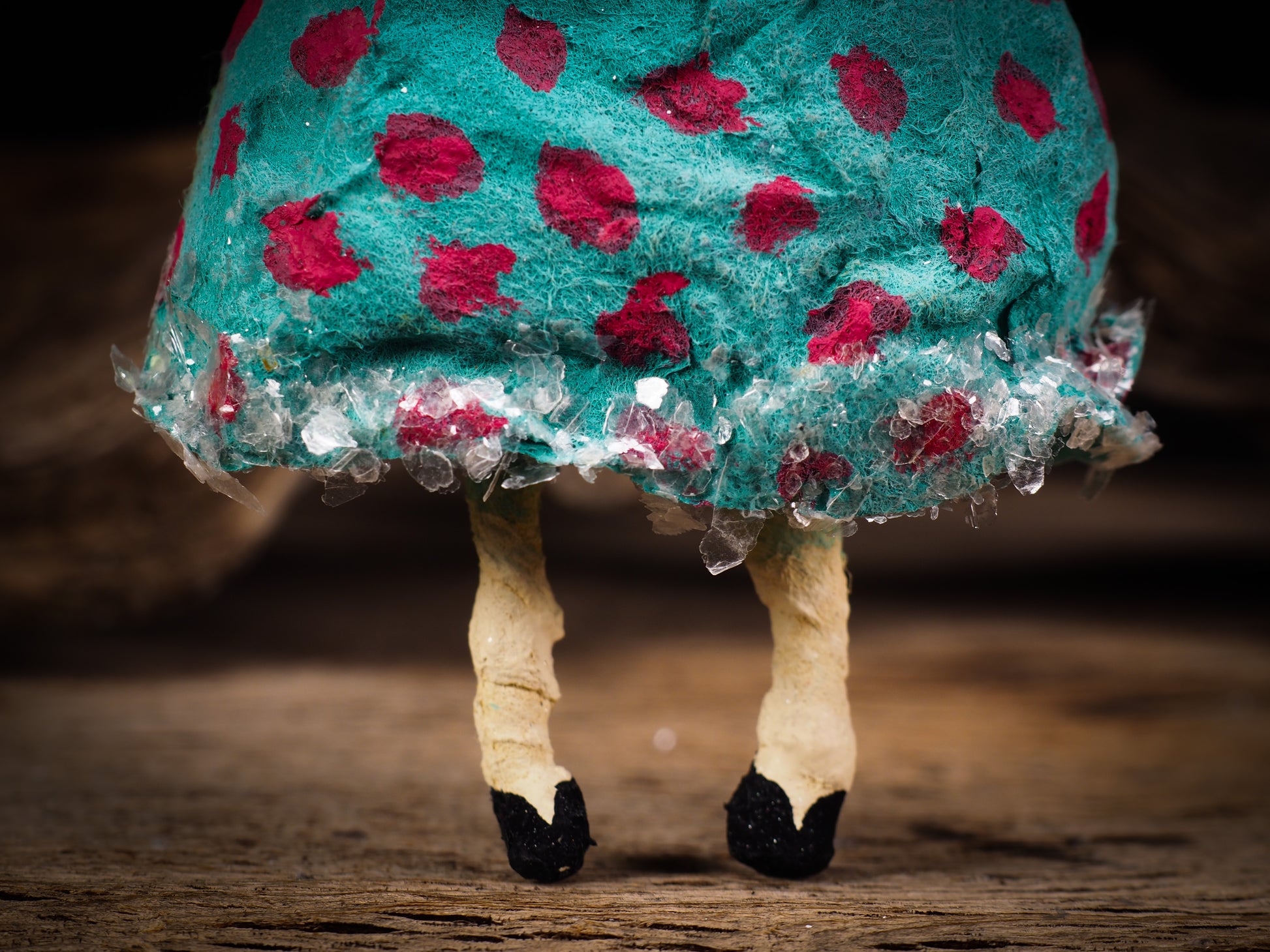 This handmade doll spun cotton doll is 100% handmade by me, Idania Salcido, the artist behind Danita Art. It has a handmade ceramic face, a spun cotton hand painted body and real glass glitter accents.