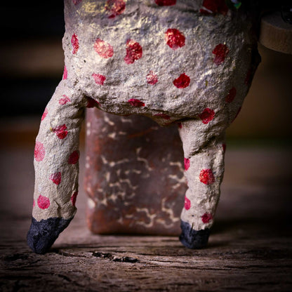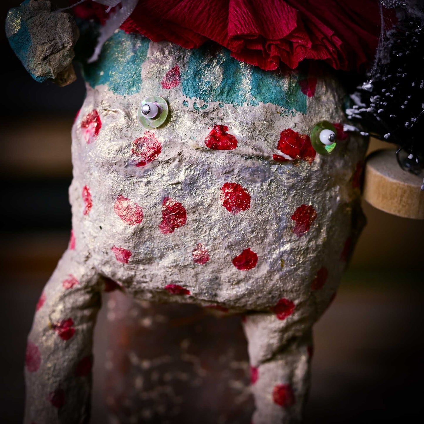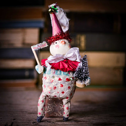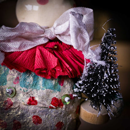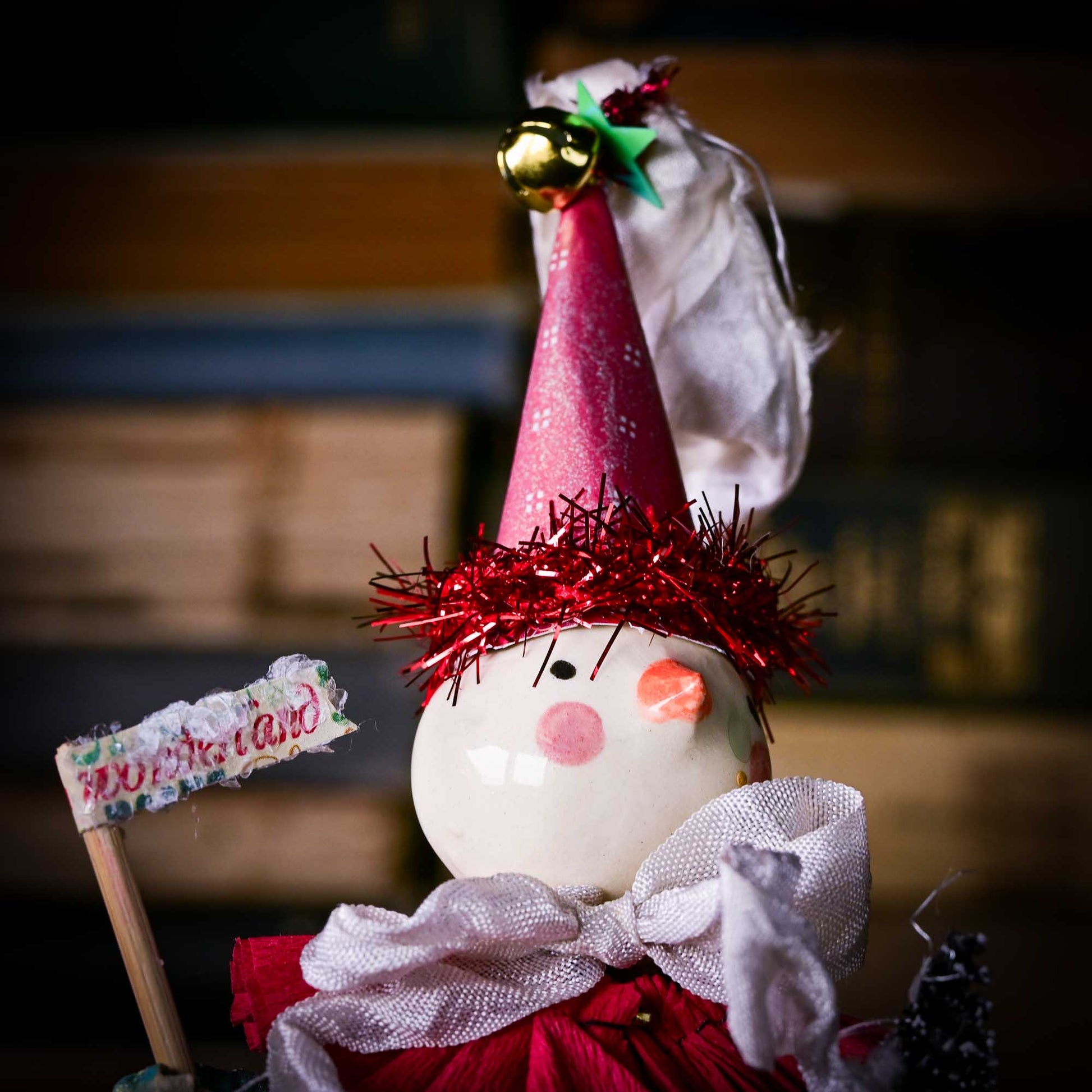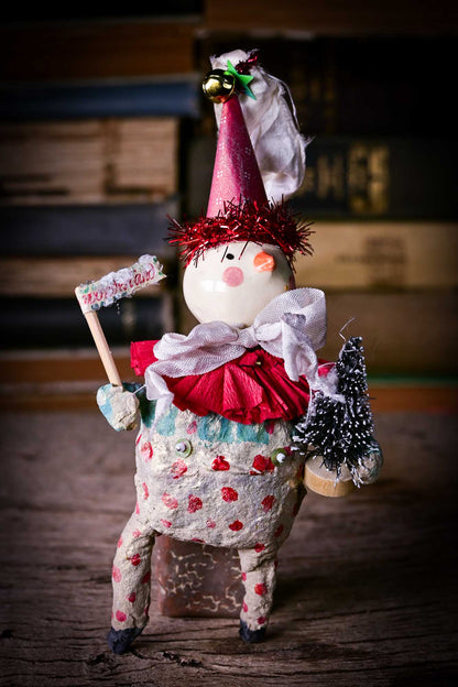 This original spun cotton handmade art doll by Idania Salcido loves to hang around my Christmas tree while he waits to be adopted. Made by me in my studio using spun cotton, vintage papers, found items and a special, custom handmade ceramic head, he will be very happy to hang from your Holiday Tree on Christmas Day.