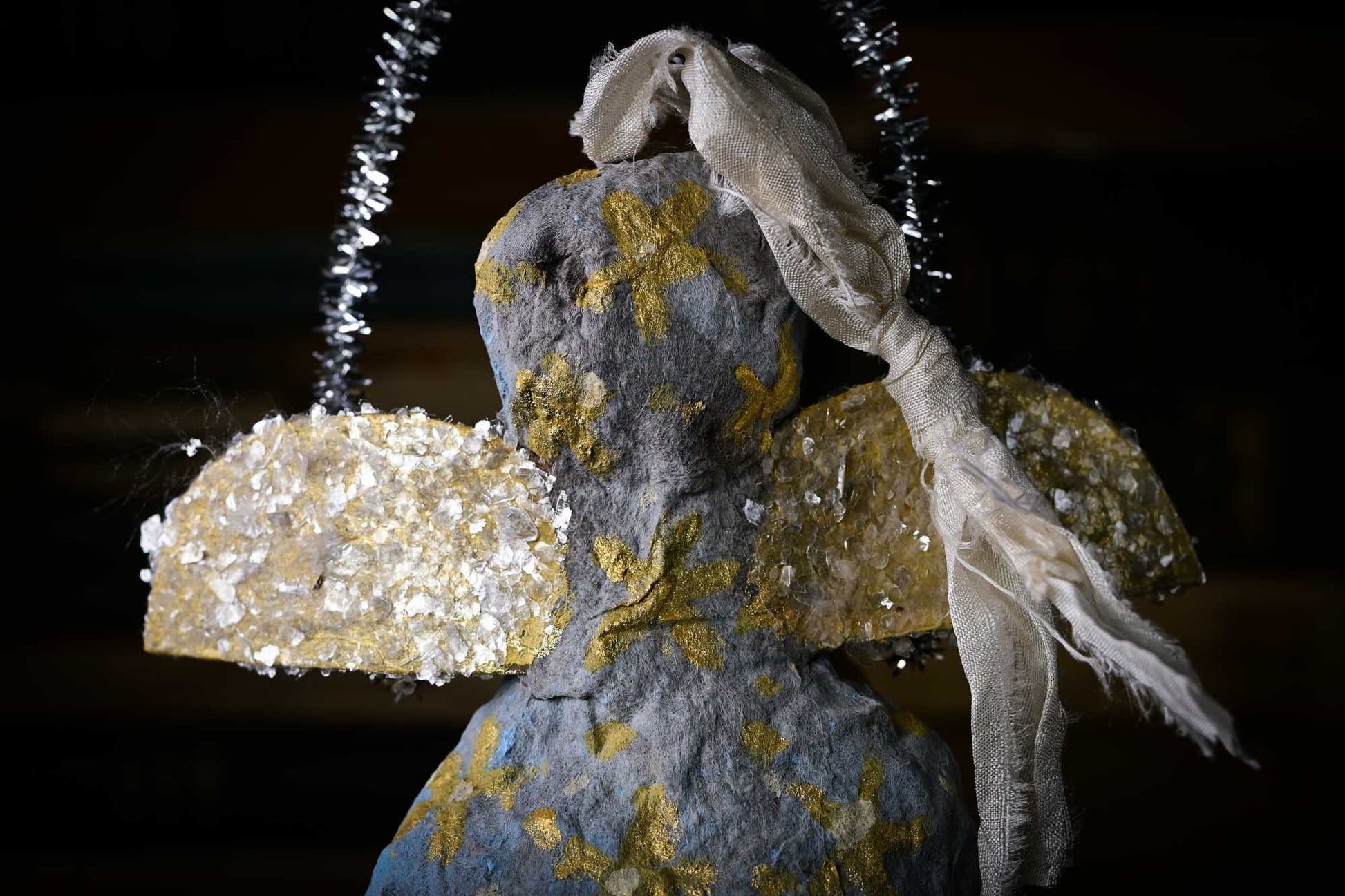 This original spun cotton handmade art doll by Idania Salcido loves to hang around my Christmas tree while he waits to be adopted. Made by me in my studio using spun cotton, vintage papers, found items and a special, custom handmade ceramic head, he will be very happy to hang from your Holiday Tree on Christmas Day.