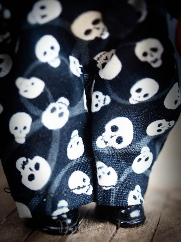 To top everything off, sh lives in a hand decorated wood box, where you can display or store her once the Halloween season is over.