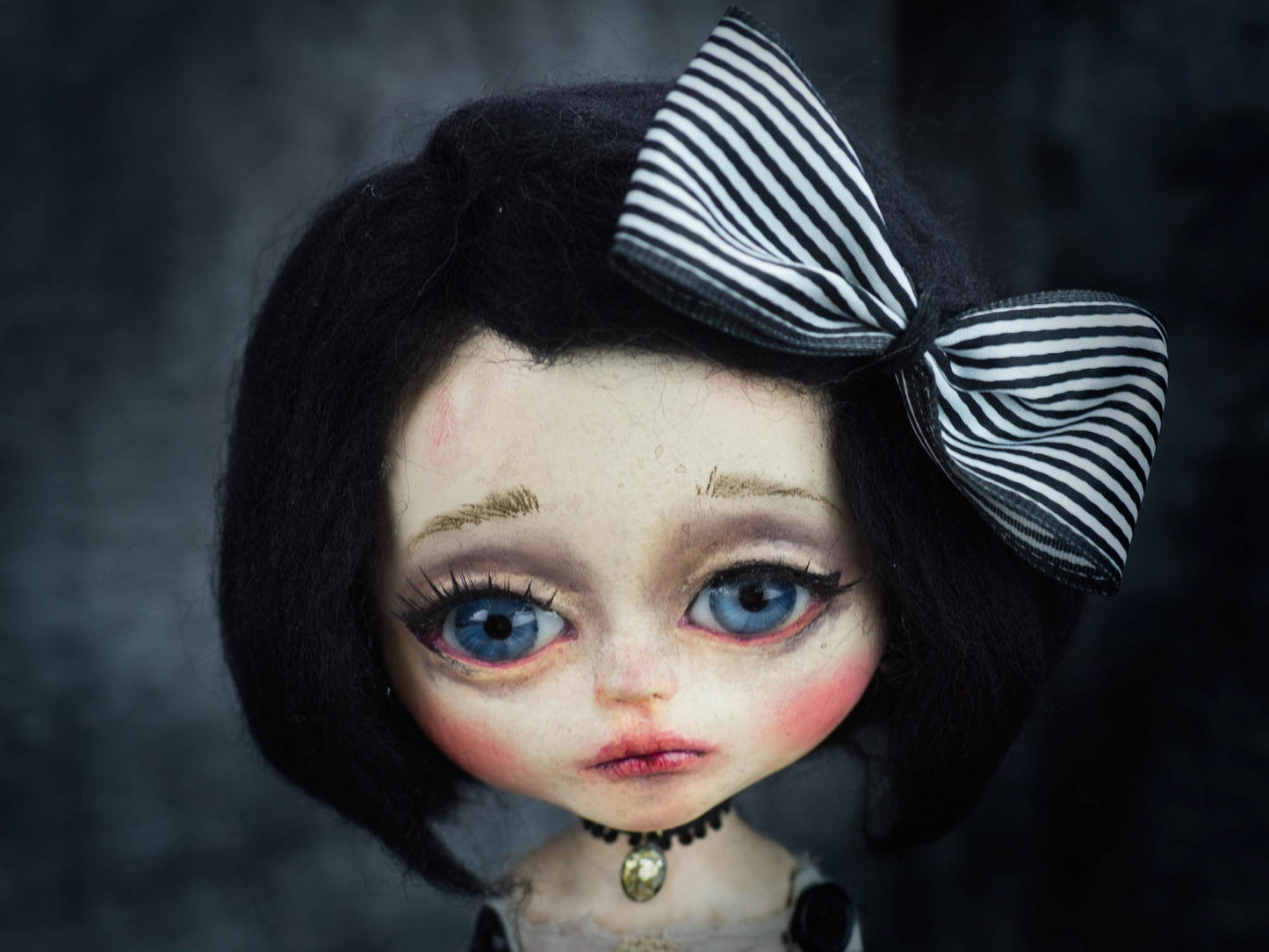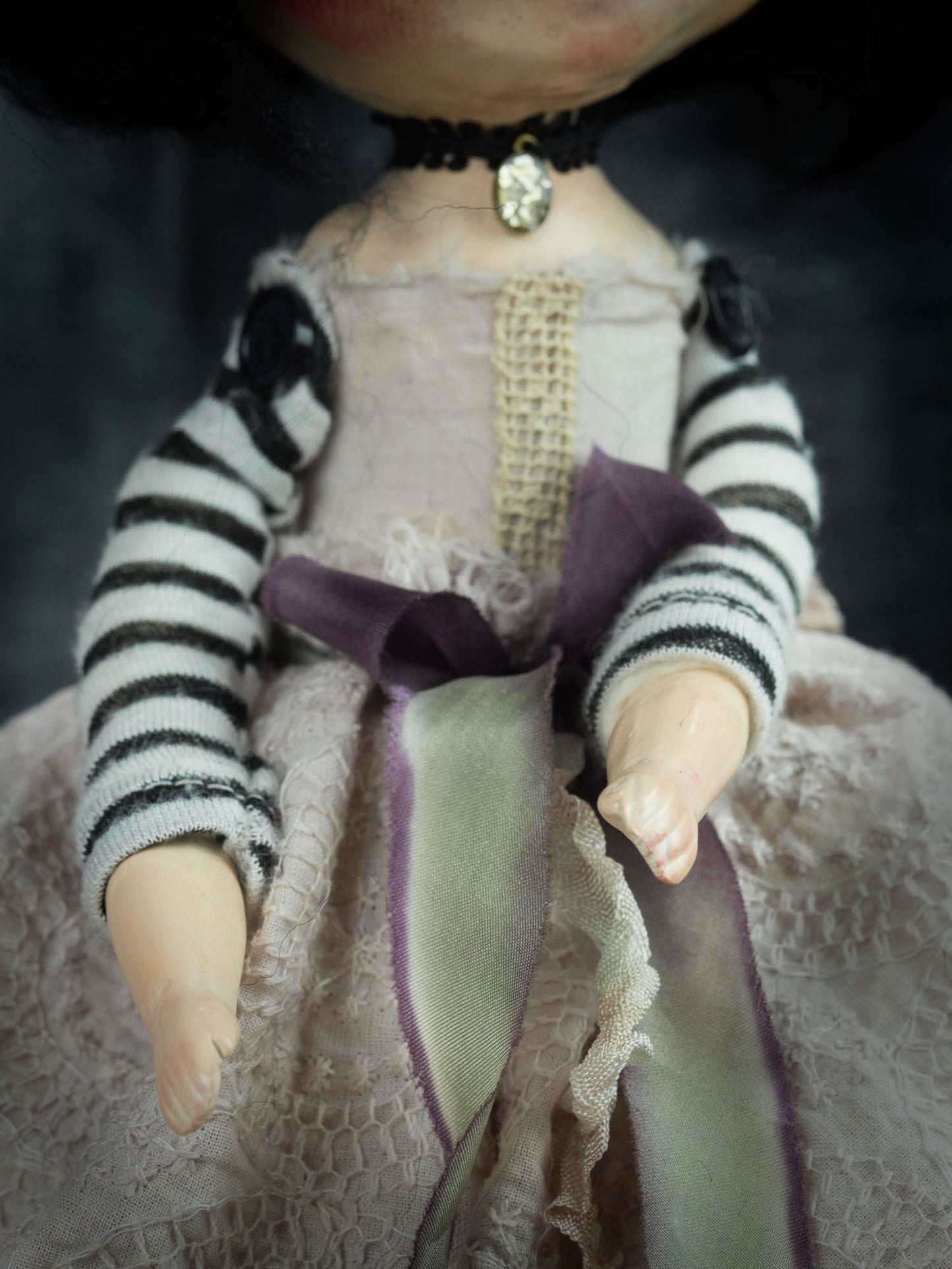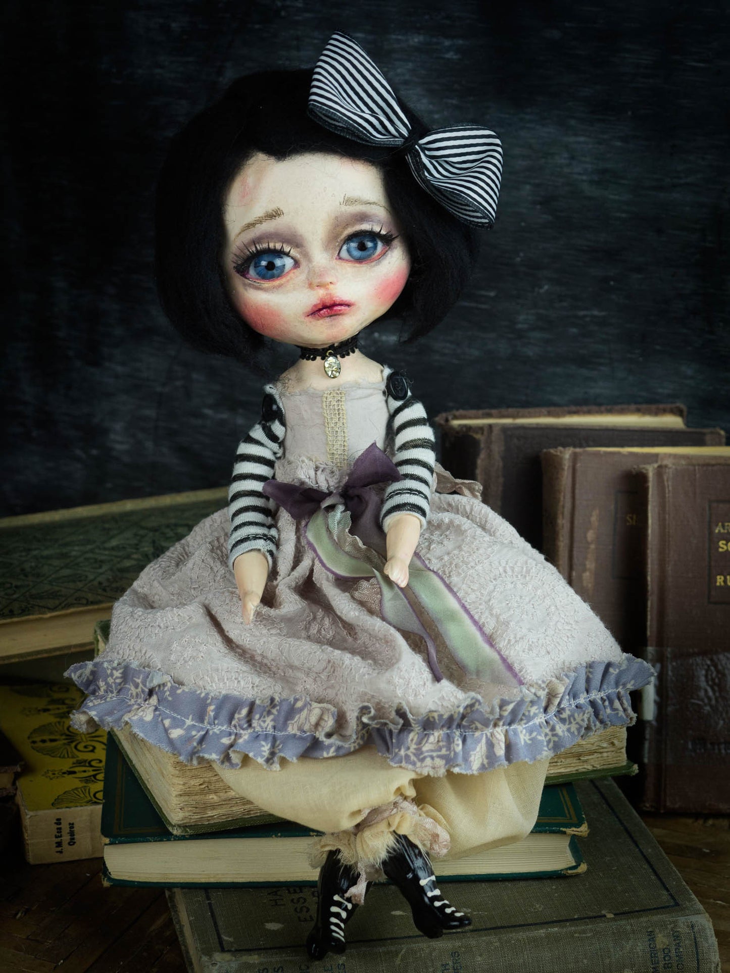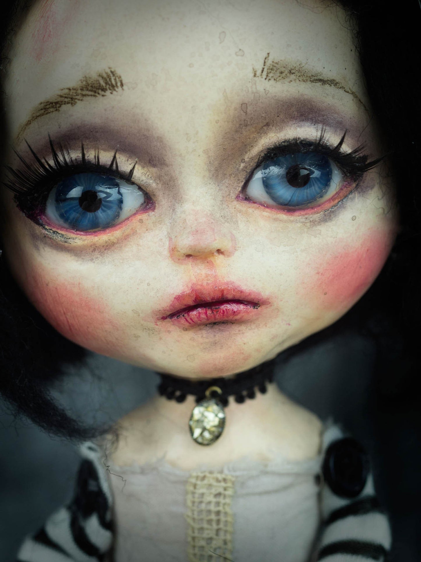 Danita creates beautiful handmade art dolls with her skilled hands, and this girl with bright, big blue eyes is no exception. Her melancholic look and the bohemian setting where she was born are a perfect combination.