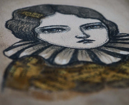 The original drawing by Danita measures 5 x 7 Inches, made using graphite, charcoal, color pencils, watercolor and paper collage. It is send UNFRAMED, but you can purchase the frame if you are interested, just send me a message on the note to the seller.